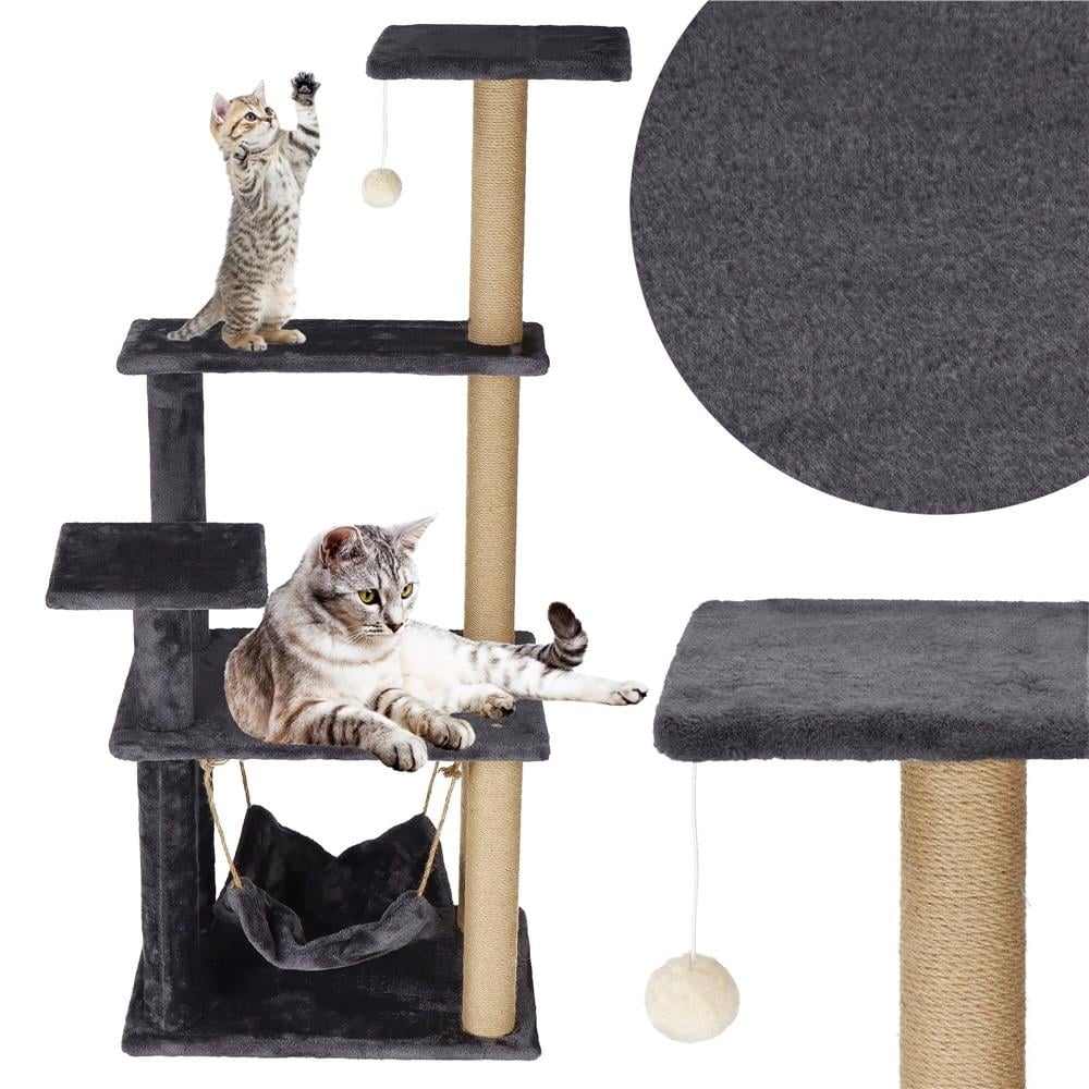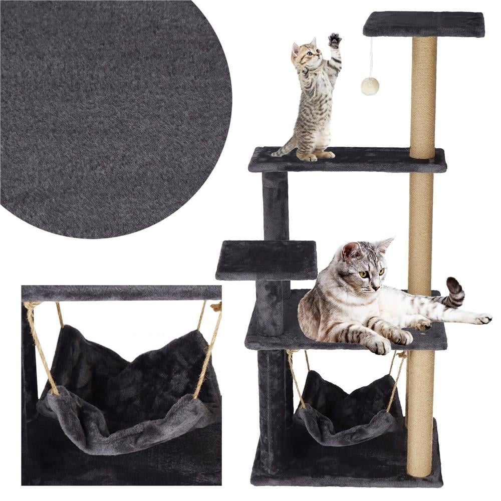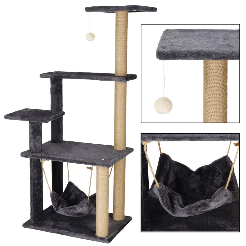 Ansamblu de joaca pentru pisici, cu loc pentru zgariat, hamac, minge, 121cm, grafit