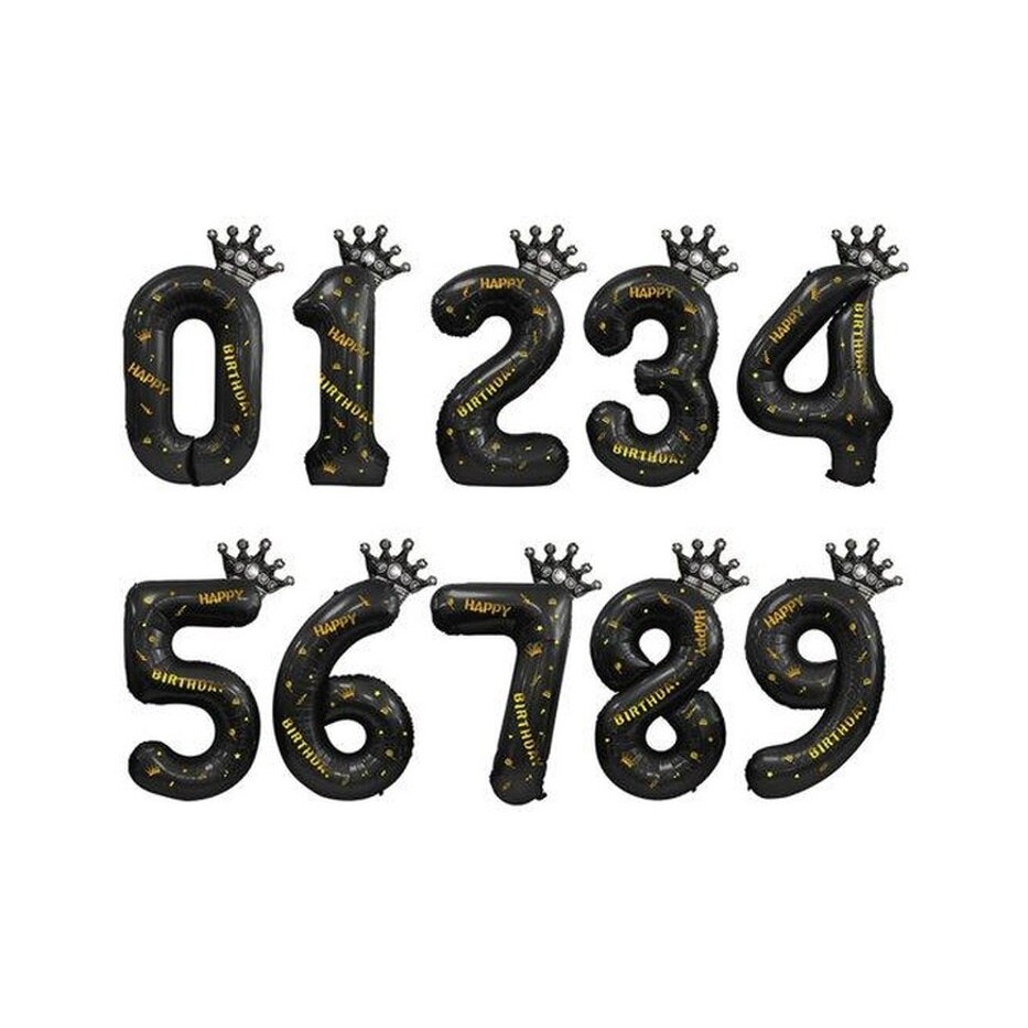 Balon din Folie Metalizata , Figurina Cifra si Coroana, Scris Happy Birthday, Tema Aniversare 100 cm, Ambalaj Individual, Pai inclus, Umflare cu Aer sau Heliu, Negru, Cifra 8