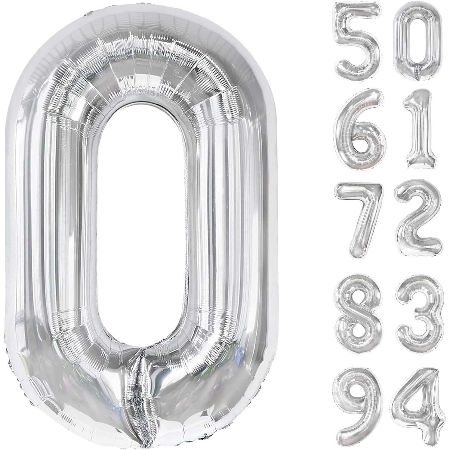 Balon din Folie Metalizata, , Figurina Cifra, Tema Aniversare 100 cm, Ambalaj Individual, Pai inclus, Umflare cu Aer sau Heliu, Argintiu, Cifra 0