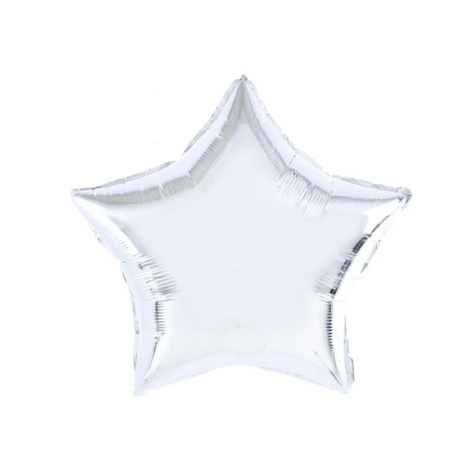 Balon din Folie Metalizata, , Figurina Stea, Model Simplu, Tematica Aniversare, 40 cm, Ambalaj Individual, Pai Inclus, Umflare cu Aer sau Heliu, Argintiu