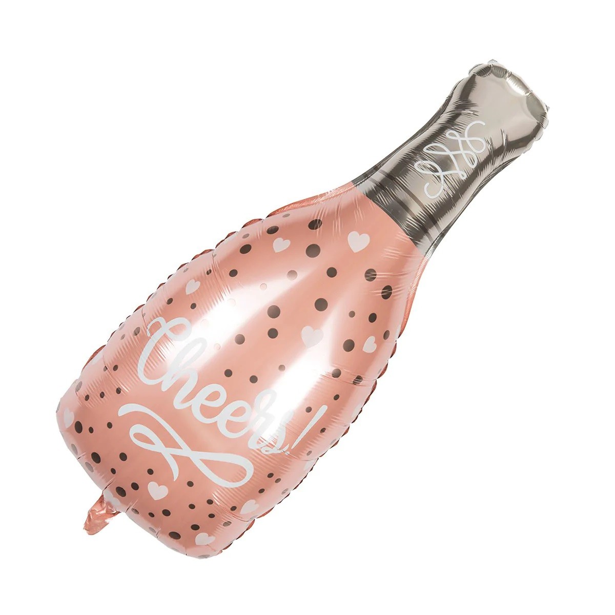 Balon din Folie Metalizata, , Figurine, Model Sticla de Sampanie, 49x98 cm, Ambalaj Individual, Pai Inclus, Umflare cu Aer sau Heliu, Roz