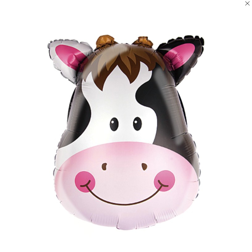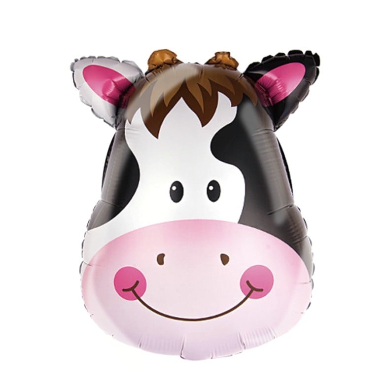 Balon din Folie Metalizata, , Mini Figurine Animalute, Model Vacuta, Tematica Aniversare, 45x40 cm, Ambalaj Individual, Pai Inclus, Umflare cu Aer sau Heliu, Multicolor