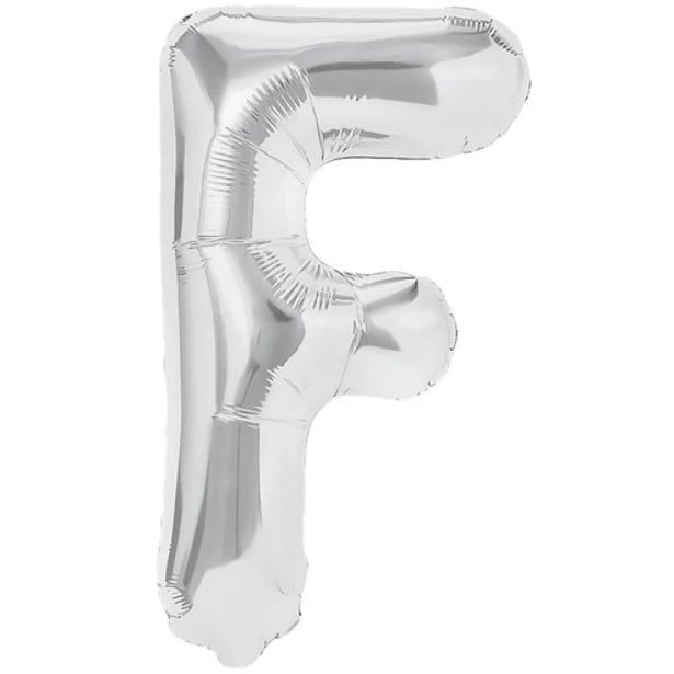 Balon Folie Metalizata Litera F, , 80 cm, Umflati cu Heliu sau Aer, Ambalaj Individual, Pai inclus, Argintiu