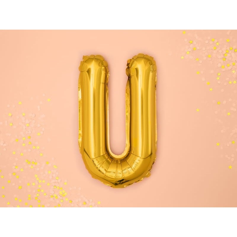 Balon Folie Metalizata Litera U, , 80 cm, Umflati cu Heliu sau Aer, Ambalaj Individual, Pai inclus, Auriu