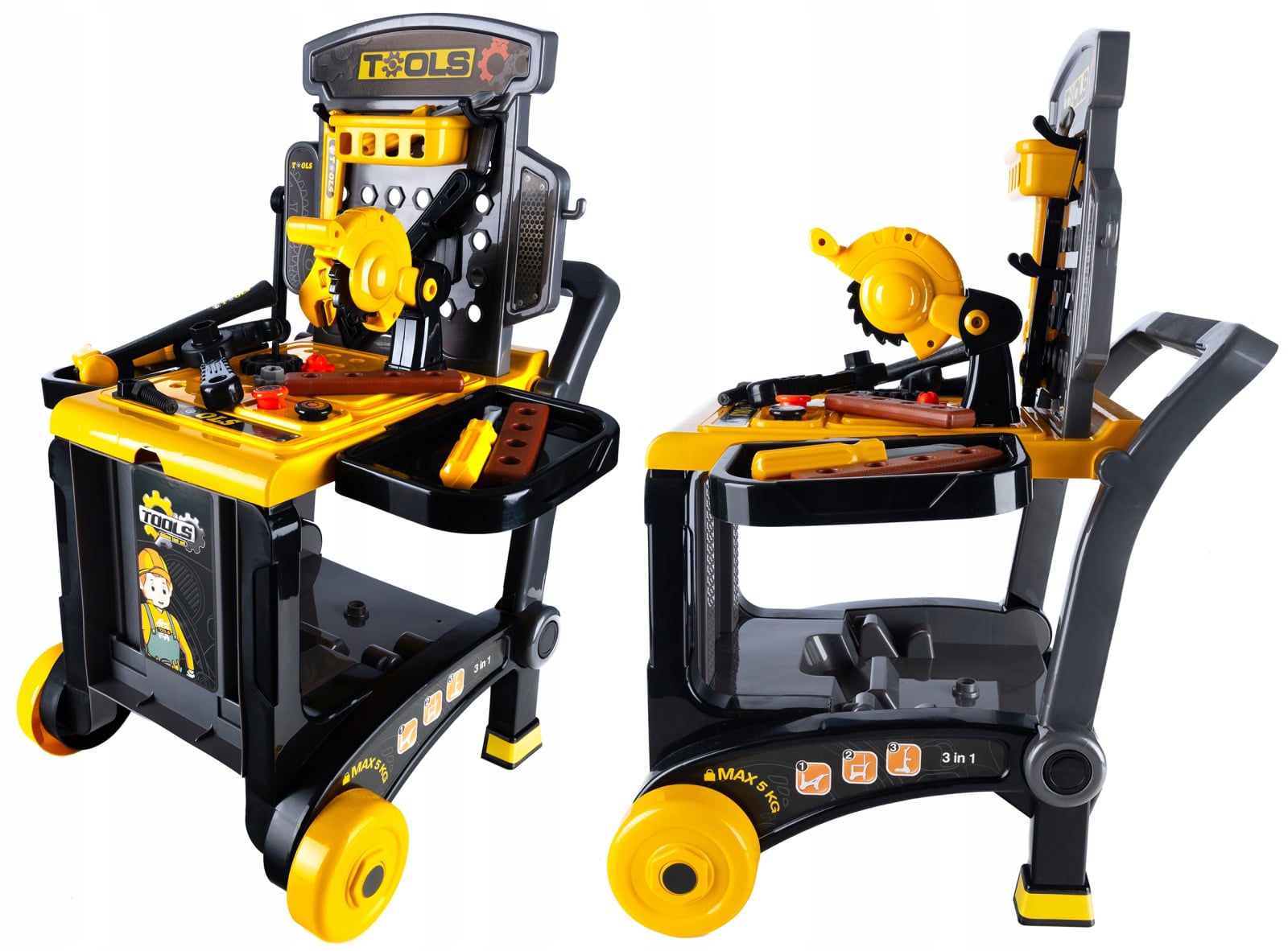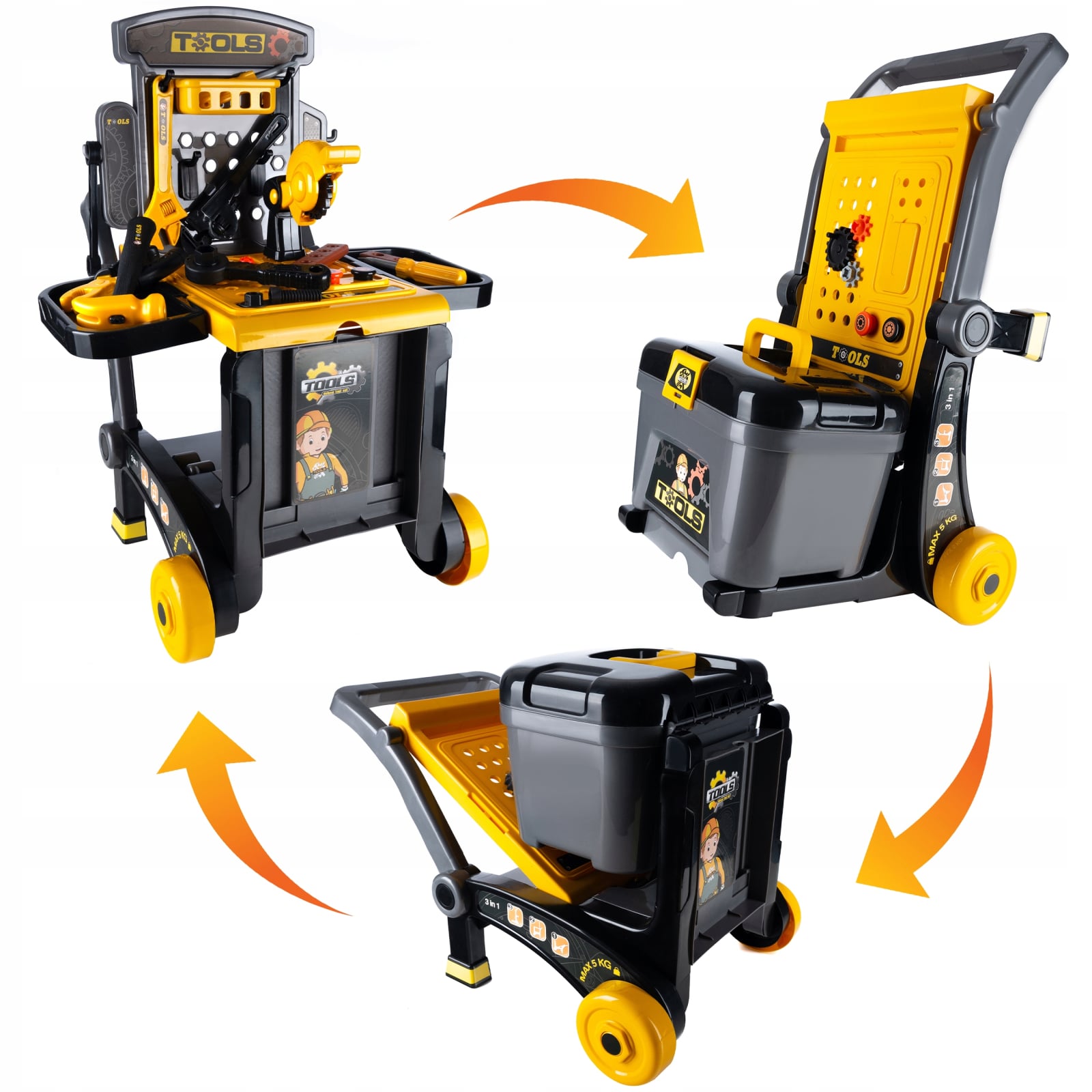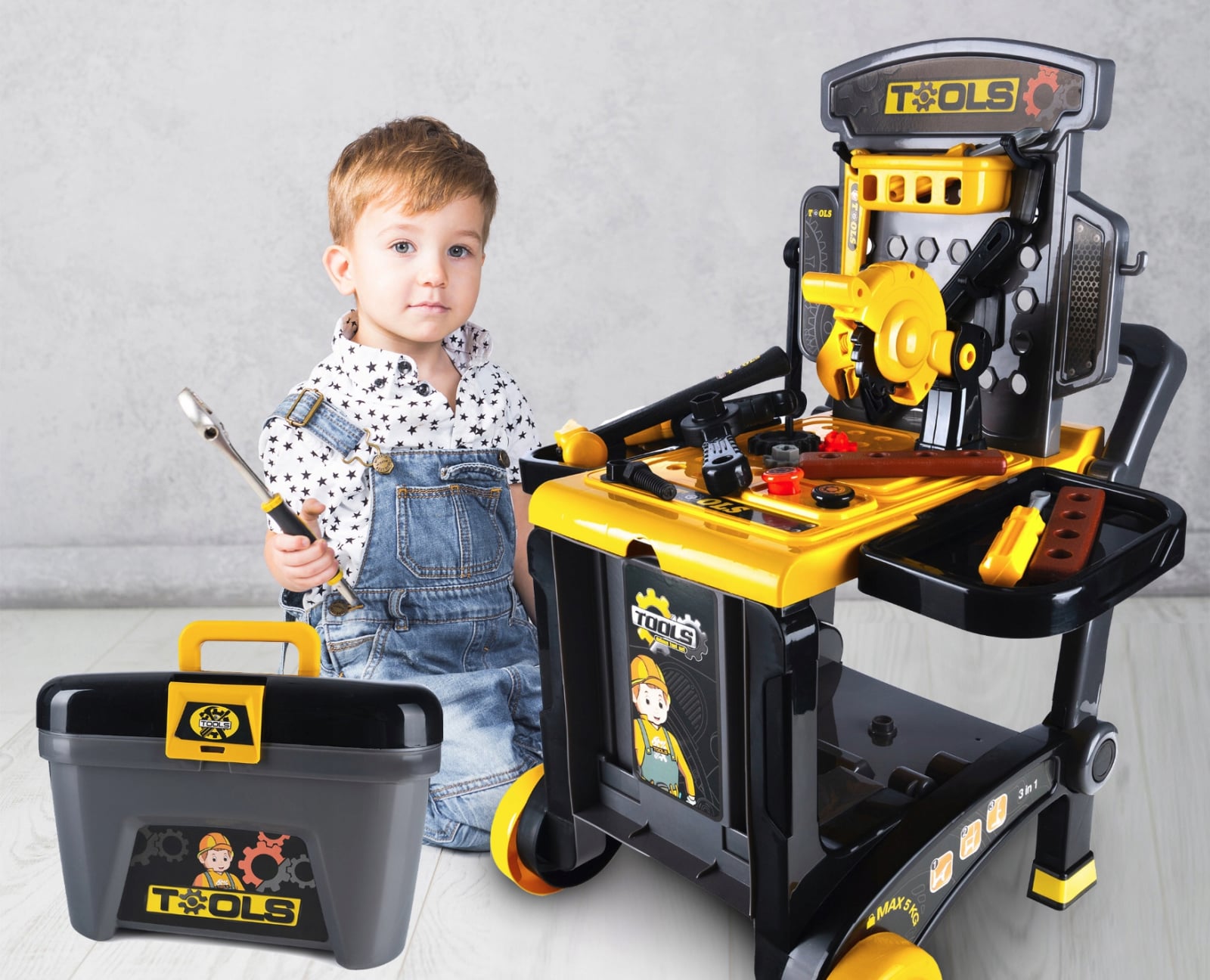Banc de lucru portbail pentru copii, cu scule si unelte pentru mecanic, 3 in 1