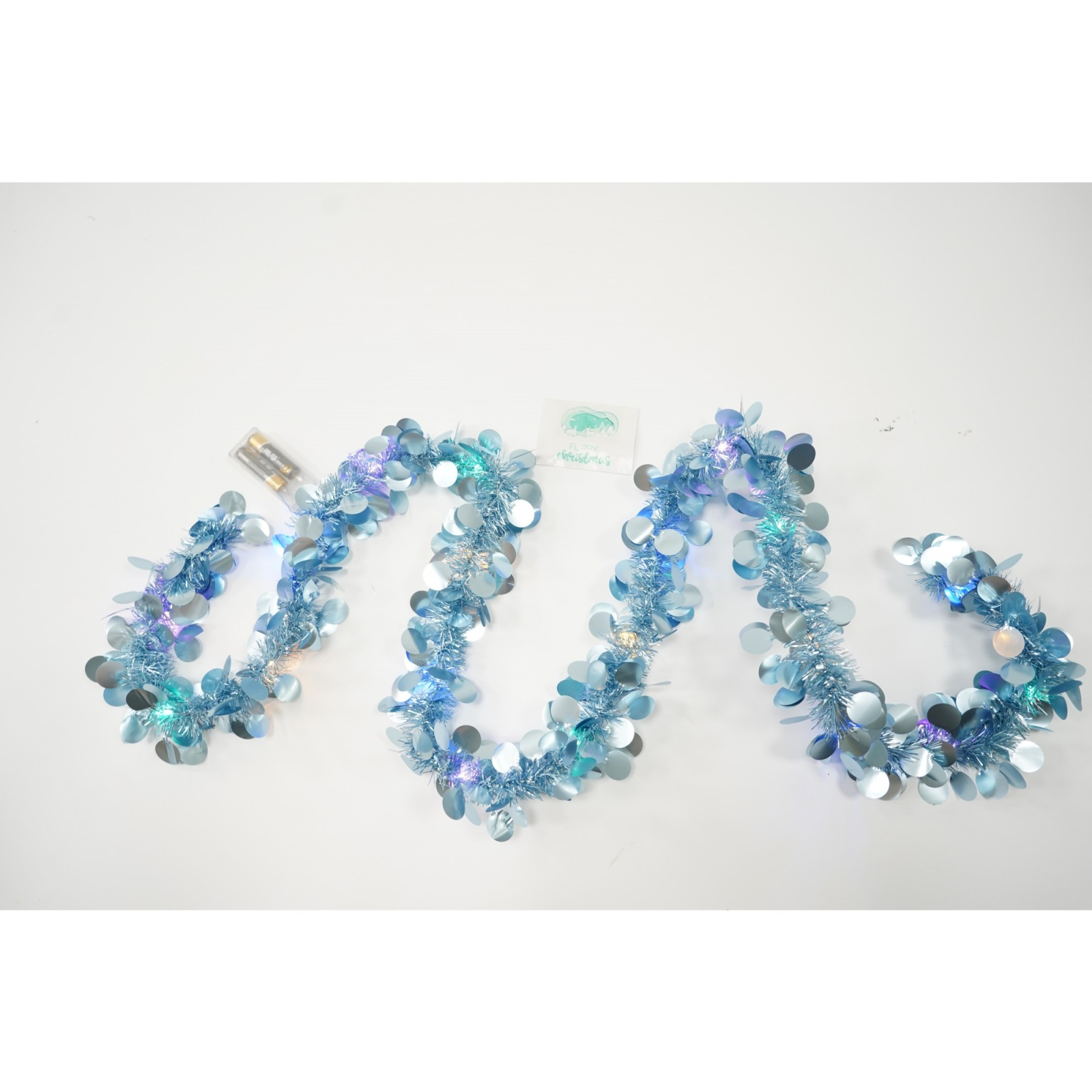 Beteala Craciun cu LED, Albastra, model cu paiete rotunde, 2 m x 5 cm, PVC, Sir, Artificiala,