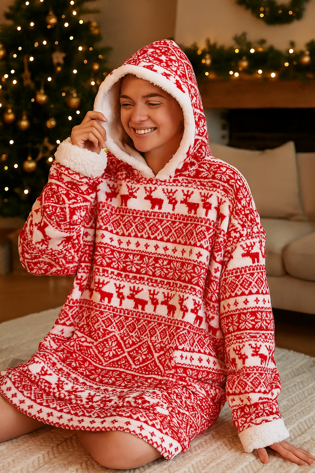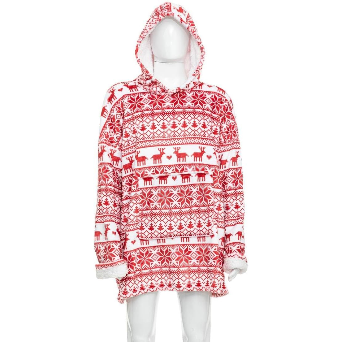 Bluza pentru adulti cu design scandinav de Craciun, oversize, 85x118 cm, rosu