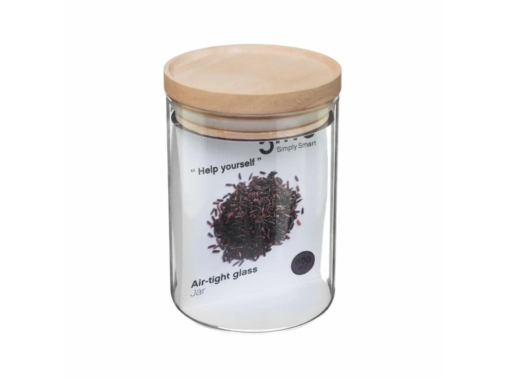 Borcan etans 5Five din sticla borosilicata cu capac lemn natural, 0.6 l, transparent
