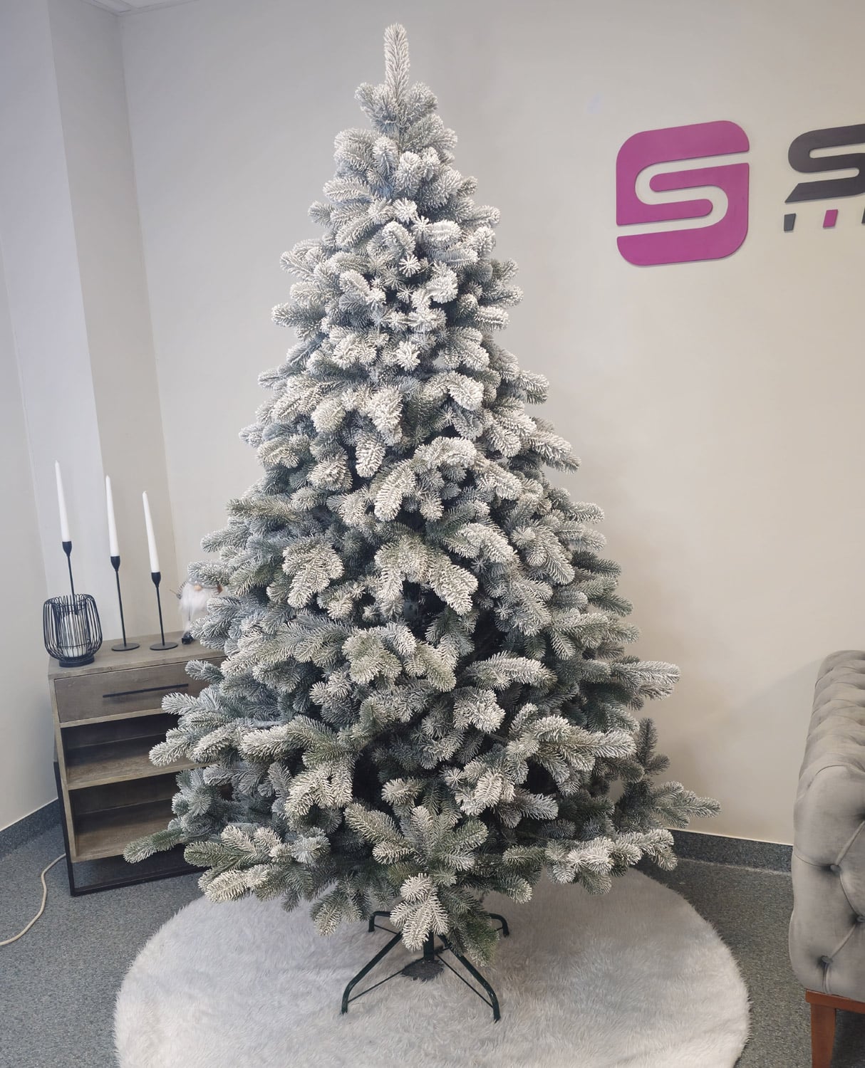 Imagine reala de prezentare pentru modelul Kovalivka Select nins, varianta 210cm PARAMETRII: – Inaltimea totala a bradului (dimensiune masurata de la podea pana in varf, cu tot cu suport): 210cm – Diametrul (latimea la baza in cel mai lat punct):  135cm – Numarul total al ramificatiilor: 484 dintre care:– Crengute 2D, material PVC: -– Crengute 3D, material PE: 484– Suport inclus: metal– Zapada: DA– Alte decoratiuni: –– Greutate (fara ambalaj): 15.9kg– Dimensiune ambalaj carton: 35 x 35 x 120cm BRAD DE CRACIUN UNIC PENTRU CRACIUN UNIC Ce poate fi mai fermecator decat atmosfera unica a Craciunului? Si probabil ca niciunul dintre noi nu se indoieste ca un brad splendid impodobit este cel mai important element care construieste aceasta atmosfera magica de Craciun. La urma urmei, ritualul anual al impodobirii in familie a bradului de Craciun este unul dintre cele mai de neuitat momente, evocand multe amintiri frumoase. Bradul de Craciun prezentat va reflecta atmosfera minunata a Craciunului intr-un mod unic, si in acelasi timp atat de cunoscut si de indragit, subliniindu-i caldura si atmosfera de familie. DESCOPERA AVANTAJELE POMULUI NOSTRU DE CRACIUN – manopera precisa, imbinand soliditatea cu eleganta– densitate mare de ramuri si ace– distributie uniforma a acelor pe toata ramura – fara goluri– spatiu liber sub etajul inferior pentru cadouri– posibilitate de modelare a crengutelor in mai multe moduri– varietatea si realismul capetelor de crenguta– culoarea acelor imitand perfect acele naturale– diferentierea ramurilor – in functie de nivelul de inaltime– grosimea si durabilitatea firelor– fiabilitatea intregii structuri – arborele este aproape imposibil de distins de brazii naturali Cu bradul Christmas Deluxe by Sersimo® – un element inseparabil al Craciunului – veti petrece aceasta perioada magica de iarna intr-o aura de bucurie si caldura. Ganditi-va doar cat de frumos vor arata decoratiunile – stralucitoare, presarate cu sclipici, incalzind interiorul. Chiar si oamenii care nu impartasesc entuziasmul de Craciun recunosc ca un brad de Craciun impodobit frumos creeaza o atmosfera aparte. Cel mai mare avantaj al bradului nostru de Craciun este numarul mare de ramuri dens aranjate. Datorita densitatii si elegantei sale captivante, nu necesita prezenta a numeroase decoratiuni, fiind cu adevarat un decor grozav al oricarui interior! Etajul cel mai de jos al pomului de Craciun este la inaltimea potrivita, astfel incat sa puteti pune cu usurinta cadourile de Craciun sub el.Crengile pot fi indoite cu usurinta in diferite directii pentru a modela diferitele ramuri ale pomului si a le da forme diferite. Crengutele individuale au finaluri realiste si variate, iar niciuna nu este taiata intr-un mod artificial si inestetic. Culoarea lor intr-un mod extrem de realist imita culoarea reala a coniferelor si nu se estompeaza in timp. Sarma ascunsa cu grija nu se vede prin ace si, in acelasi timp, este suficient de groasa si rezistenta pentru ca bradul sa va serveasca ani de zile! Ace din folie PVC, puternice si durabile, sunt in acelasi timp extrem de placute la atingere. Deoarece bradul de Craciun – spre deosebire de copacii adevarati – nu ii pierde, nu va fi nevoie sa aspirati camera in mod regulat. Mai mult decat atat, acele sunt distribuite uniform pe toata lungimea ramurii, garantand astfel un efect vizual de densitate, fara goluri. https://youtube.com/shorts/1CLUcSSM3pA