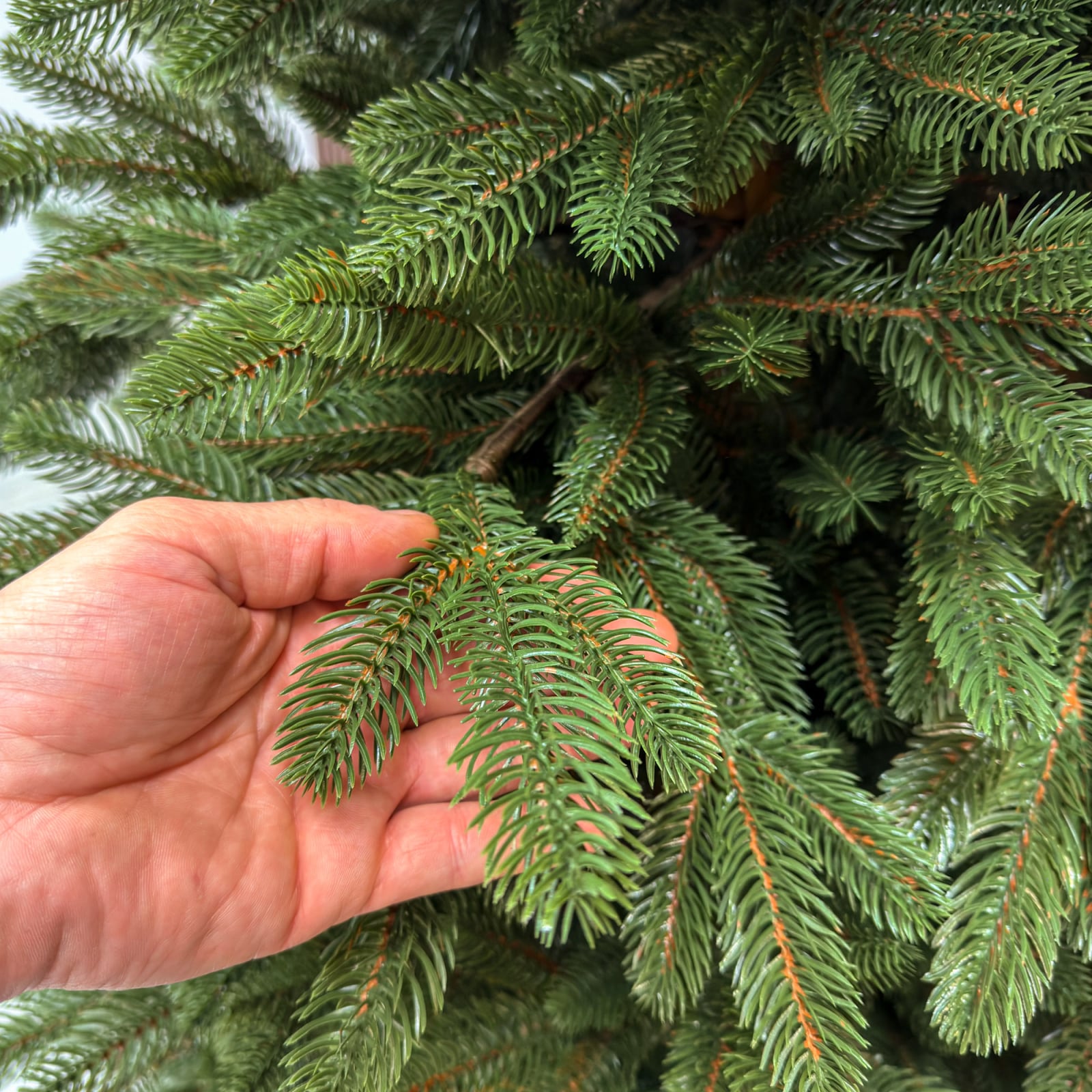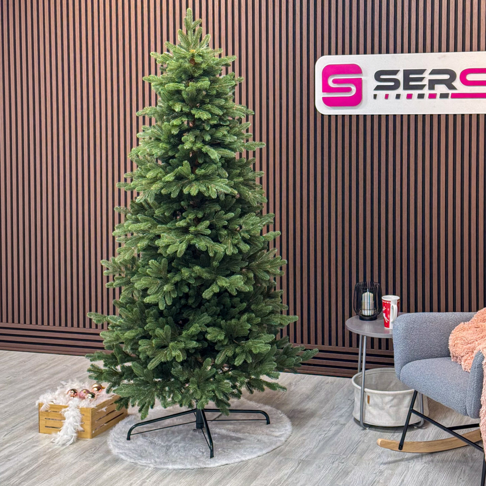 Imagine reala de prezentare pentru modelul Sofie Elite, verde, integral 3D, 210 cm PARAMETRII: – Inaltimea totala a bradului (dimensiune masurata de la podea pana in varf, cu tot cu suport): 210cm – Diametrul (latimea la baza in cel mai lat punct):  115cm – Numarul total al ramificatiilor: 647  dintre care:– Crengute 2D, material PVC: -– Crengute 3D, material PE: 647– Suport inclus: metal– Zapada: NU– Alte decoratiuni: -– Greutate (fara ambalaj): 13.0kg– Dimensiune ambalaj carton: 31 x 31 x 125cm– Sistem instalare: crengi atasate de tulpina BRAD DE CRACIUN UNIC PENTRU CRACIUN UNIC Ce poate fi mai fermecator decat atmosfera unica a Craciunului? Si probabil ca niciunul dintre noi nu se indoieste ca un brad splendid impodobit este cel mai important element care construieste aceasta atmosfera magica de Craciun. La urma urmei, ritualul anual al impodobirii in familie a bradului de Craciun este unul dintre cele mai de neuitat momente, evocand multe amintiri frumoase. Bradul de Craciun prezentat va reflecta atmosfera minunata a Craciunului intr-un mod unic, si in acelasi timp atat de cunoscut si de indragit, subliniindu-i caldura si atmosfera de familie. DESCOPERA AVANTAJELE POMULUI NOSTRU DE CRACIUN – manopera precisa, imbinand soliditatea cu eleganta– densitate mare de ramuri si ace– distributie uniforma a acelor pe toata ramura – fara goluri– spatiu liber sub etajul inferior pentru cadouri– posibilitate de modelare a crengutelor in mai multe moduri– varietatea si realismul capetelor de crenguta– culoarea acelor imitand perfect acele naturale– diferentierea ramurilor – in functie de nivelul de inaltime– grosimea si durabilitatea firelor– fiabilitatea intregii structuri – arborele este aproape imposibil de distins de brazii naturali Cu bradul Christmas Deluxe by Sersimo® – un element inseparabil al Craciunului – veti petrece aceasta perioada magica de iarna intr-o aura de bucurie si caldura. Ganditi-va doar cat de frumos vor arata decoratiunile – stralucitoare, presarate cu sclipici, incalzind interiorul. Chiar si oamenii care nu impartasesc entuziasmul de Craciun recunosc ca un brad de Craciun impodobit frumos creeaza o atmosfera aparte. Cel mai mare avantaj al bradului nostru de Craciun este numarul mare de ramuri dens aranjate. Datorita densitatii si elegantei sale captivante, nu necesita prezenta a numeroase decoratiuni, fiind cu adevarat un decor grozav al oricarui interior! Etajul cel mai de jos al pomului de Craciun este la inaltimea potrivita, astfel incat sa puteti pune cu usurinta cadourile de Craciun sub el.Crengile pot fi indoite cu usurinta in diferite directii pentru a modela diferitele ramuri ale pomului si a le da forme diferite. Crengutele individuale au finaluri realiste si variate, iar niciuna nu este taiata intr-un mod artificial si inestetic. Culoarea lor intr-un mod extrem de realist imita culoarea reala a coniferelor si nu se estompeaza in timp. Sarma ascunsa cu grija nu se vede prin ace si, in acelasi timp, este suficient de groasa si rezistenta pentru ca bradul sa va serveasca ani de zile! Ace din folie PVC, puternice si durabile, sunt in acelasi timp extrem de placute la atingere. Deoarece bradul de Craciun – spre deosebire de copacii adevarati – nu ii pierde, nu va fi nevoie sa aspirati camera in mod regulat. Mai mult decat atat, acele sunt distribuite uniform pe toata lungimea ramurii, garantand astfel un efect vizual de densitate, fara goluri.