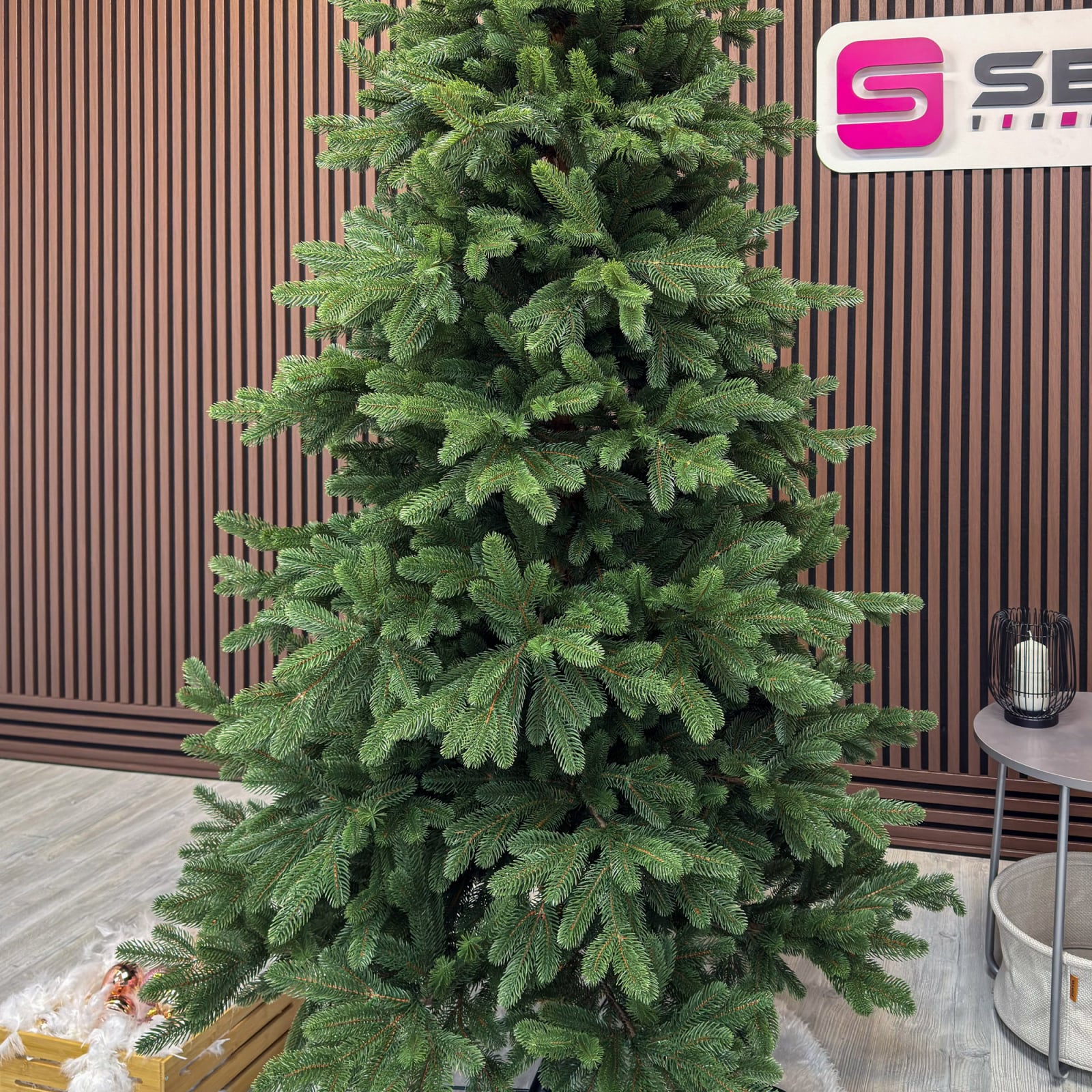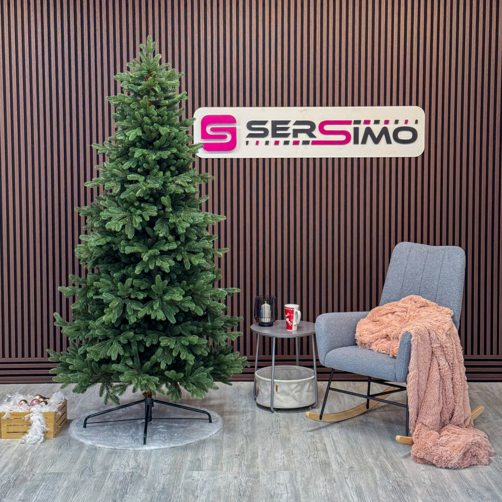 Imagine reala de prezentare pentru modelul Sofie Elite, verde, integral 3D, 230 cm PARAMETRII: – Inaltimea totala a bradului (dimensiune masurata de la podea pana in varf, cu tot cu suport): 230cm – Diametrul (latimea la baza in cel mai lat punct):  120cm – Numarul total al ramificatiilor: 840  dintre care:– Crengute 2D, material PVC: -– Crengute 3D, material PE: 840– Suport inclus: metal– Zapada: NU– Alte decoratiuni: -– Greutate (fara ambalaj): 17.3kg– Dimensiune ambalaj carton: 35 x 35 x 125cm– Sistem instalare: crengi atasate de tulpina BRAD DE CRACIUN UNIC PENTRU CRACIUN UNIC Ce poate fi mai fermecator decat atmosfera unica a Craciunului? Si probabil ca niciunul dintre noi nu se indoieste ca un brad splendid impodobit este cel mai important element care construieste aceasta atmosfera magica de Craciun. La urma urmei, ritualul anual al impodobirii in familie a bradului de Craciun este unul dintre cele mai de neuitat momente, evocand multe amintiri frumoase. Bradul de Craciun prezentat va reflecta atmosfera minunata a Craciunului intr-un mod unic, si in acelasi timp atat de cunoscut si de indragit, subliniindu-i caldura si atmosfera de familie. DESCOPERA AVANTAJELE POMULUI NOSTRU DE CRACIUN – manopera precisa, imbinand soliditatea cu eleganta– densitate mare de ramuri si ace– distributie uniforma a acelor pe toata ramura – fara goluri– spatiu liber sub etajul inferior pentru cadouri– posibilitate de modelare a crengutelor in mai multe moduri– varietatea si realismul capetelor de crenguta– culoarea acelor imitand perfect acele naturale– diferentierea ramurilor – in functie de nivelul de inaltime– grosimea si durabilitatea firelor– fiabilitatea intregii structuri – arborele este aproape imposibil de distins de brazii naturali Cu bradul Christmas Deluxe by Sersimo® – un element inseparabil al Craciunului – veti petrece aceasta perioada magica de iarna intr-o aura de bucurie si caldura. Ganditi-va doar cat de frumos vor arata decoratiunile – stralucitoare, presarate cu sclipici, incalzind interiorul. Chiar si oamenii care nu impartasesc entuziasmul de Craciun recunosc ca un brad de Craciun impodobit frumos creeaza o atmosfera aparte. Cel mai mare avantaj al bradului nostru de Craciun este numarul mare de ramuri dens aranjate. Datorita densitatii si elegantei sale captivante, nu necesita prezenta a numeroase decoratiuni, fiind cu adevarat un decor grozav al oricarui interior! Etajul cel mai de jos al pomului de Craciun este la inaltimea potrivita, astfel incat sa puteti pune cu usurinta cadourile de Craciun sub el.Crengile pot fi indoite cu usurinta in diferite directii pentru a modela diferitele ramuri ale pomului si a le da forme diferite. Crengutele individuale au finaluri realiste si variate, iar niciuna nu este taiata intr-un mod artificial si inestetic. Culoarea lor intr-un mod extrem de realist imita culoarea reala a coniferelor si nu se estompeaza in timp. Sarma ascunsa cu grija nu se vede prin ace si, in acelasi timp, este suficient de groasa si rezistenta pentru ca bradul sa va serveasca ani de zile! Ace din folie PVC, puternice si durabile, sunt in acelasi timp extrem de placute la atingere. Deoarece bradul de Craciun – spre deosebire de copacii adevarati – nu ii pierde, nu va fi nevoie sa aspirati camera in mod regulat. Mai mult decat atat, acele sunt distribuite uniform pe toata lungimea ramurii, garantand astfel un efect vizual de densitate, fara goluri.