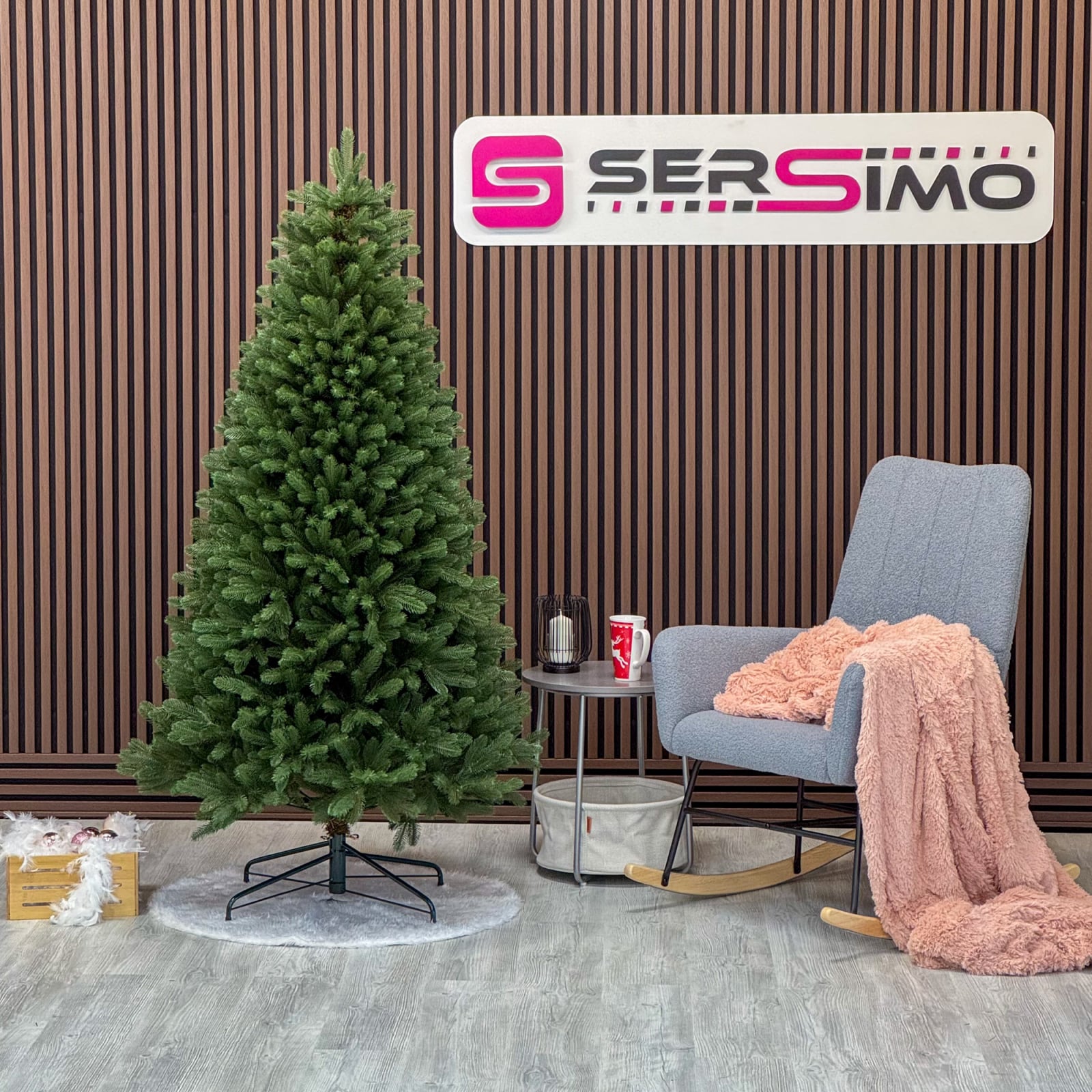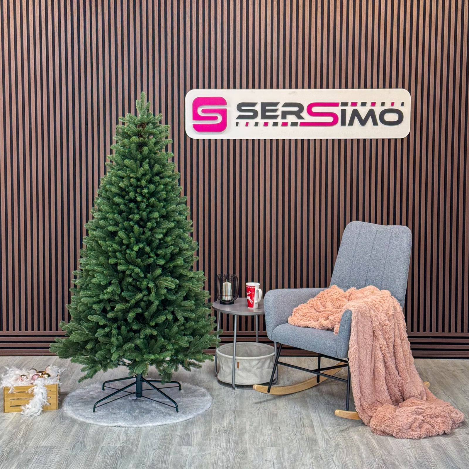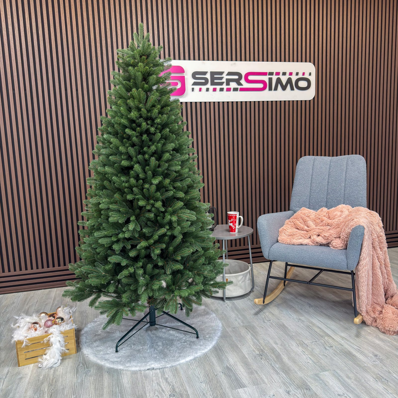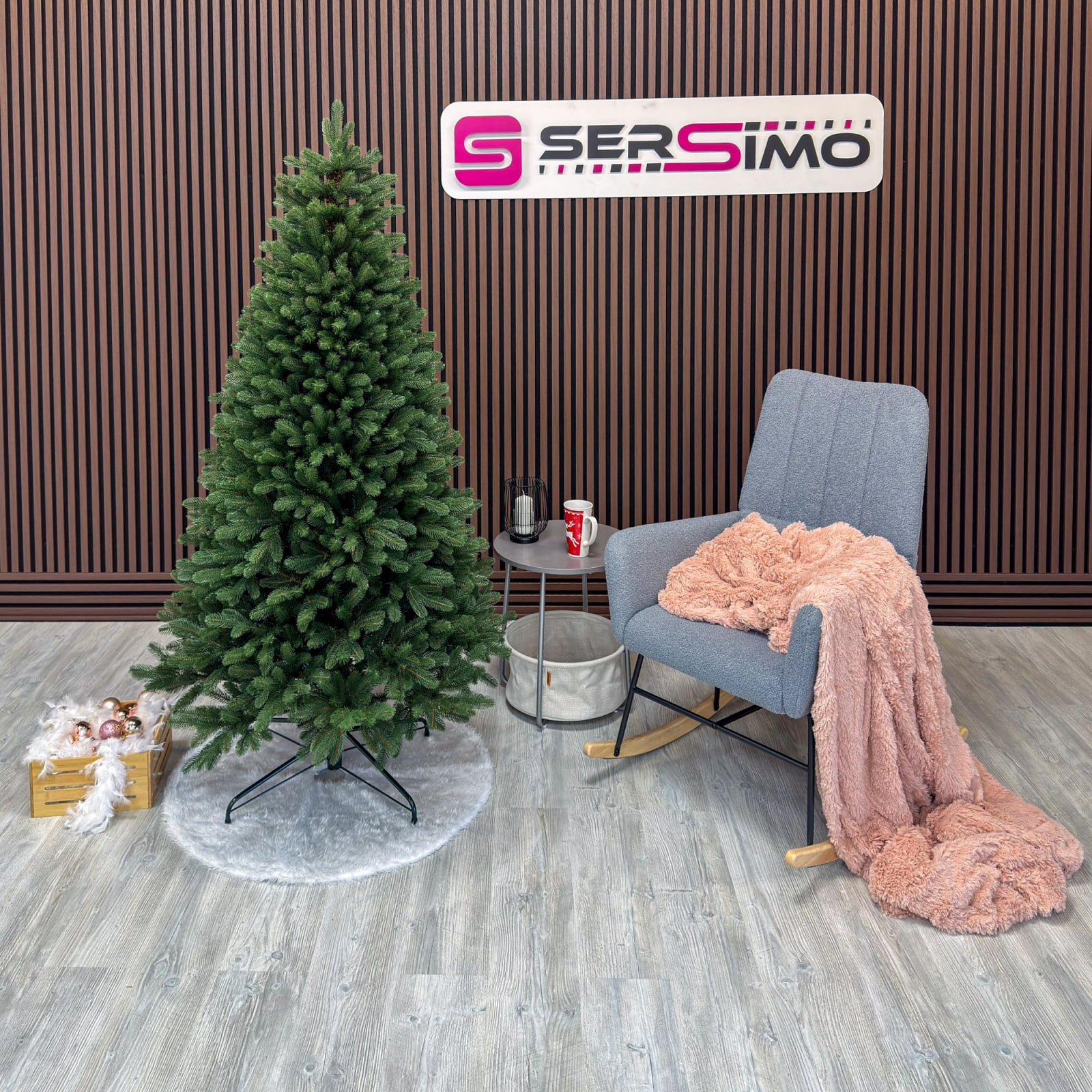 Imagine reala de prezentare pentru modelul Viorisse Elite, verde, integral 3D, 190 cm PARAMETRII: – Inaltimea totala a bradului (dimensiune masurata de la podea pana in varf, cu tot cu suport): 190 cm – Diametrul (latimea la baza in cel mai lat punct):  105 cm – Numarul total al ramificatiilor: 900  dintre care:– Crengute 2D, material PVC: -– Crengute 3D, material PE: 900– Suport inclus: metal– Zapada: NU– Alte decoratiuni: -– Greutate (fara ambalaj): 15 kg– Dimensiune ambalaj carton: 31 x 31 x 125 cm– Sistem instalare: umbrela cu balamale BRAD DE CRACIUN UNIC PENTRU CRACIUN UNIC Ce poate fi mai fermecator decat atmosfera unica a Craciunului? Si probabil ca niciunul dintre noi nu se indoieste ca un brad splendid impodobit este cel mai important element care construieste aceasta atmosfera magica de Craciun. La urma urmei, ritualul anual al impodobirii in familie a bradului de Craciun este unul dintre cele mai de neuitat momente, evocand multe amintiri frumoase. Bradul de Craciun prezentat va reflecta atmosfera minunata a Craciunului intr-un mod unic, si in acelasi timp atat de cunoscut si de indragit, subliniindu-i caldura si atmosfera de familie. DESCOPERA AVANTAJELE POMULUI NOSTRU DE CRACIUN – manopera precisa, imbinand soliditatea cu eleganta– densitate mare de ramuri si ace– distributie uniforma a acelor pe toata ramura – fara goluri– spatiu liber sub etajul inferior pentru cadouri– posibilitate de modelare a crengutelor in mai multe moduri– varietatea si realismul capetelor de crenguta– culoarea acelor imitand perfect acele naturale– diferentierea ramurilor – in functie de nivelul de inaltime– grosimea si durabilitatea firelor– fiabilitatea intregii structuri – arborele este aproape imposibil de distins de brazii naturali Cu bradul Christmas Deluxe by Sersimo® – un element inseparabil al Craciunului – veti petrece aceasta perioada magica de iarna intr-o aura de bucurie si caldura. Ganditi-va doar cat de frumos vor arata decoratiunile – stralucitoare, presarate cu sclipici, incalzind interiorul. Chiar si oamenii care nu impartasesc entuziasmul de Craciun recunosc ca un brad de Craciun impodobit frumos creeaza o atmosfera aparte. Cel mai mare avantaj al bradului nostru de Craciun este numarul mare de ramuri dens aranjate. Datorita densitatii si elegantei sale captivante, nu necesita prezenta a numeroase decoratiuni, fiind cu adevarat un decor grozav al oricarui interior! Etajul cel mai de jos al pomului de Craciun este la inaltimea potrivita, astfel incat sa puteti pune cu usurinta cadourile de Craciun sub el.Crengile pot fi indoite cu usurinta in diferite directii pentru a modela diferitele ramuri ale pomului si a le da forme diferite. Crengutele individuale au finaluri realiste si variate, iar niciuna nu este taiata intr-un mod artificial si inestetic. Culoarea lor intr-un mod extrem de realist imita culoarea reala a coniferelor si nu se estompeaza in timp. Sarma ascunsa cu grija nu se vede prin ace si, in acelasi timp, este suficient de groasa si rezistenta pentru ca bradul sa va serveasca ani de zile! Ace din folie PVC, puternice si durabile, sunt in acelasi timp extrem de placute la atingere. Deoarece bradul de Craciun – spre deosebire de copacii adevarati – nu ii pierde, nu va fi nevoie sa aspirati camera in mod regulat. Mai mult decat atat, acele sunt distribuite uniform pe toata lungimea ramurii, garantand astfel un efect vizual de densitate, fara goluri.