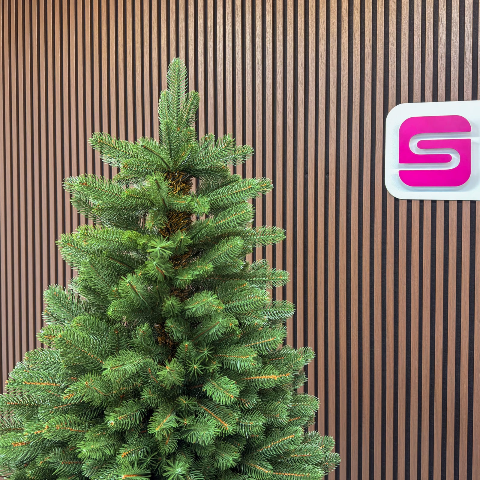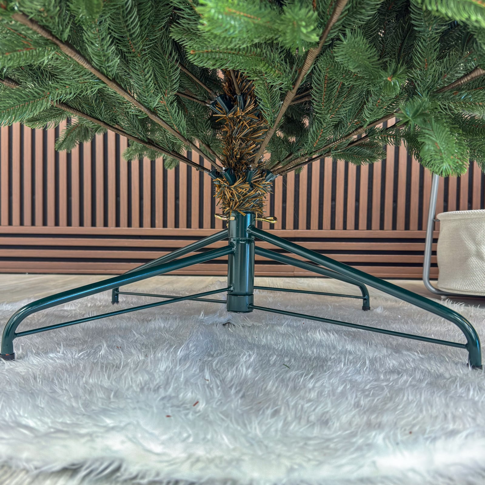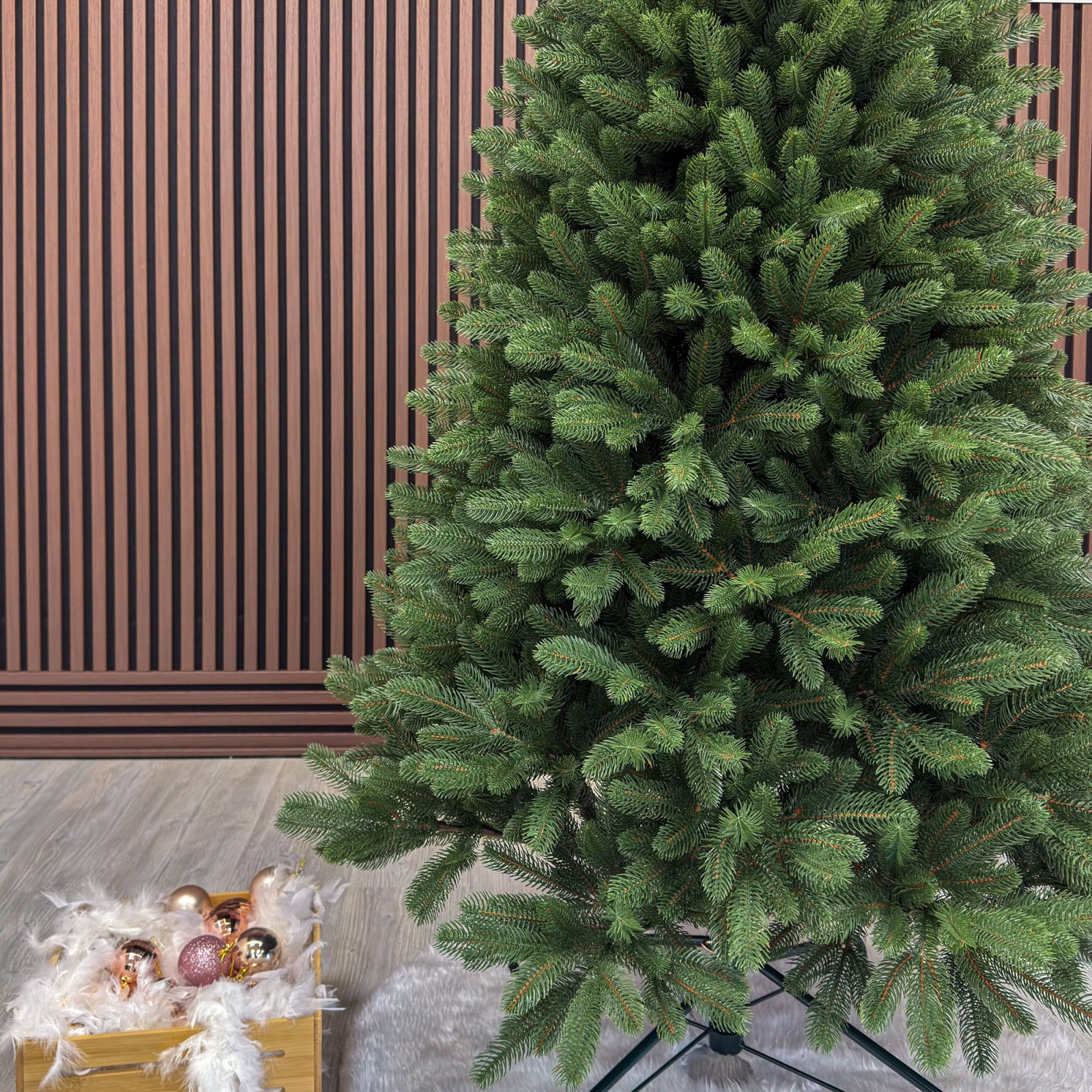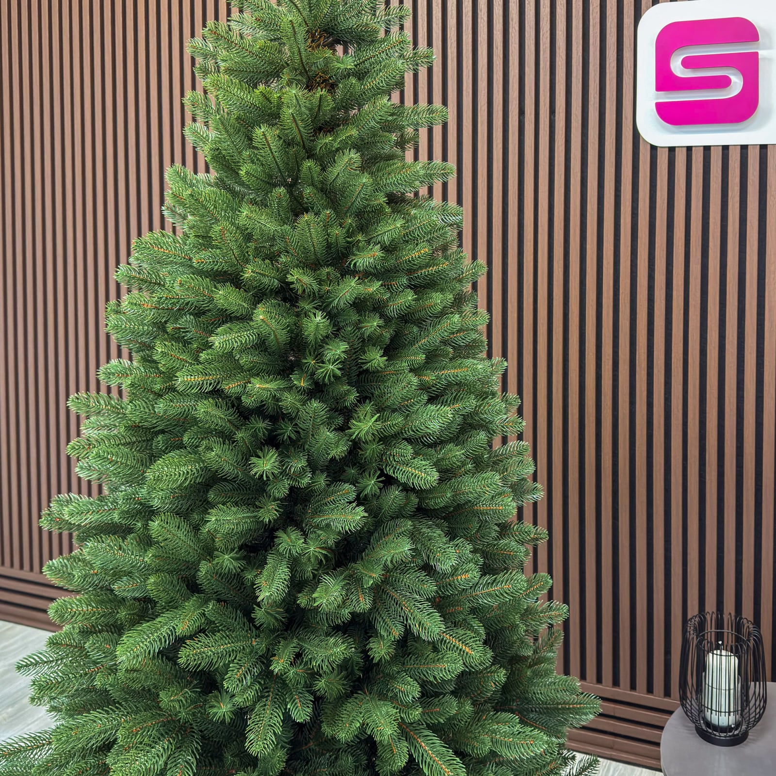 Imagine reala de prezentare pentru modelul Viorisse Elite, verde, integral 3D, 190 cm PARAMETRII: – Inaltimea totala a bradului (dimensiune masurata de la podea pana in varf, cu tot cu suport): 190 cm – Diametrul (latimea la baza in cel mai lat punct):  105 cm – Numarul total al ramificatiilor: 900  dintre care:– Crengute 2D, material PVC: -– Crengute 3D, material PE: 900– Suport inclus: metal– Zapada: NU– Alte decoratiuni: -– Greutate (fara ambalaj): 15 kg– Dimensiune ambalaj carton: 31 x 31 x 125 cm– Sistem instalare: umbrela cu balamale BRAD DE CRACIUN UNIC PENTRU CRACIUN UNIC Ce poate fi mai fermecator decat atmosfera unica a Craciunului? Si probabil ca niciunul dintre noi nu se indoieste ca un brad splendid impodobit este cel mai important element care construieste aceasta atmosfera magica de Craciun. La urma urmei, ritualul anual al impodobirii in familie a bradului de Craciun este unul dintre cele mai de neuitat momente, evocand multe amintiri frumoase. Bradul de Craciun prezentat va reflecta atmosfera minunata a Craciunului intr-un mod unic, si in acelasi timp atat de cunoscut si de indragit, subliniindu-i caldura si atmosfera de familie. DESCOPERA AVANTAJELE POMULUI NOSTRU DE CRACIUN – manopera precisa, imbinand soliditatea cu eleganta– densitate mare de ramuri si ace– distributie uniforma a acelor pe toata ramura – fara goluri– spatiu liber sub etajul inferior pentru cadouri– posibilitate de modelare a crengutelor in mai multe moduri– varietatea si realismul capetelor de crenguta– culoarea acelor imitand perfect acele naturale– diferentierea ramurilor – in functie de nivelul de inaltime– grosimea si durabilitatea firelor– fiabilitatea intregii structuri – arborele este aproape imposibil de distins de brazii naturali Cu bradul Christmas Deluxe by Sersimo® – un element inseparabil al Craciunului – veti petrece aceasta perioada magica de iarna intr-o aura de bucurie si caldura. Ganditi-va doar cat de frumos vor arata decoratiunile – stralucitoare, presarate cu sclipici, incalzind interiorul. Chiar si oamenii care nu impartasesc entuziasmul de Craciun recunosc ca un brad de Craciun impodobit frumos creeaza o atmosfera aparte. Cel mai mare avantaj al bradului nostru de Craciun este numarul mare de ramuri dens aranjate. Datorita densitatii si elegantei sale captivante, nu necesita prezenta a numeroase decoratiuni, fiind cu adevarat un decor grozav al oricarui interior! Etajul cel mai de jos al pomului de Craciun este la inaltimea potrivita, astfel incat sa puteti pune cu usurinta cadourile de Craciun sub el.Crengile pot fi indoite cu usurinta in diferite directii pentru a modela diferitele ramuri ale pomului si a le da forme diferite. Crengutele individuale au finaluri realiste si variate, iar niciuna nu este taiata intr-un mod artificial si inestetic. Culoarea lor intr-un mod extrem de realist imita culoarea reala a coniferelor si nu se estompeaza in timp. Sarma ascunsa cu grija nu se vede prin ace si, in acelasi timp, este suficient de groasa si rezistenta pentru ca bradul sa va serveasca ani de zile! Ace din folie PVC, puternice si durabile, sunt in acelasi timp extrem de placute la atingere. Deoarece bradul de Craciun – spre deosebire de copacii adevarati – nu ii pierde, nu va fi nevoie sa aspirati camera in mod regulat. Mai mult decat atat, acele sunt distribuite uniform pe toata lungimea ramurii, garantand astfel un efect vizual de densitate, fara goluri.