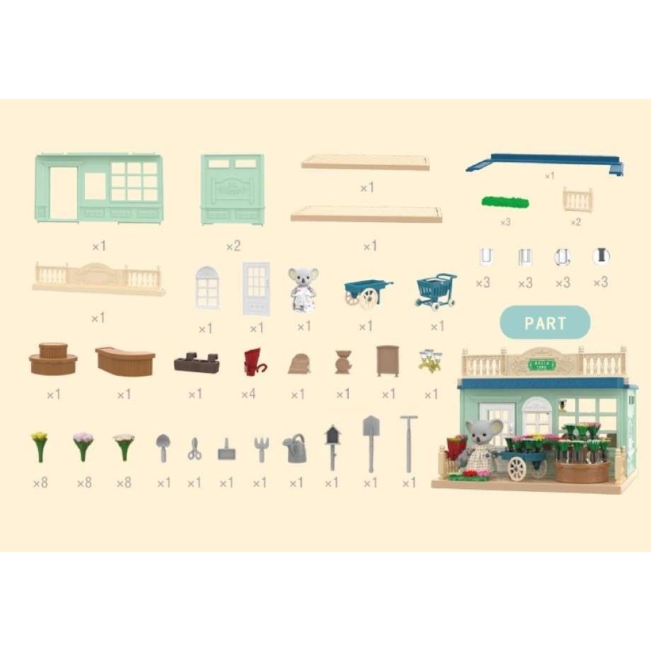 Pachetul include atat piesele pentru a construi floraria, cat si florile si ustensilele de gradinarit pe care copilul tau le poate invata de la o varsta mica, dar si o figurina simpatica pentru si mai multa distractie.