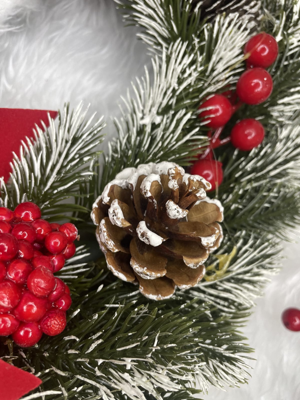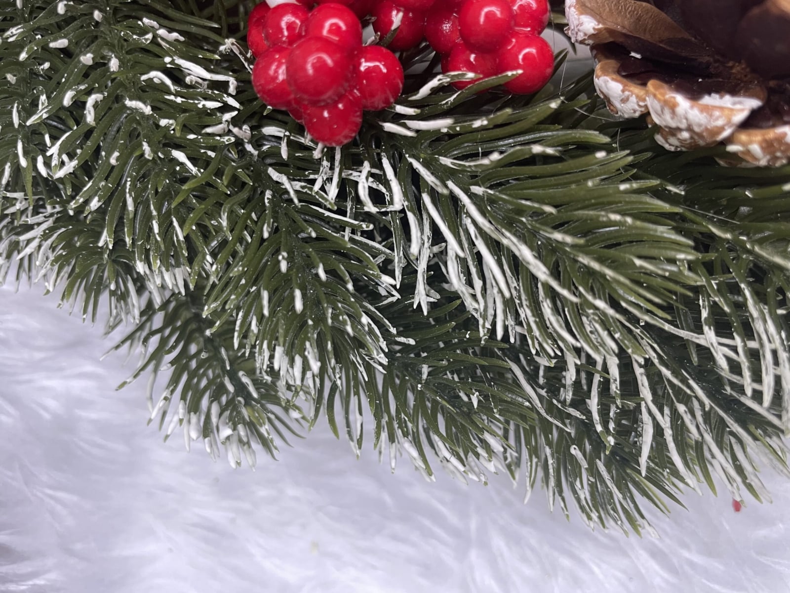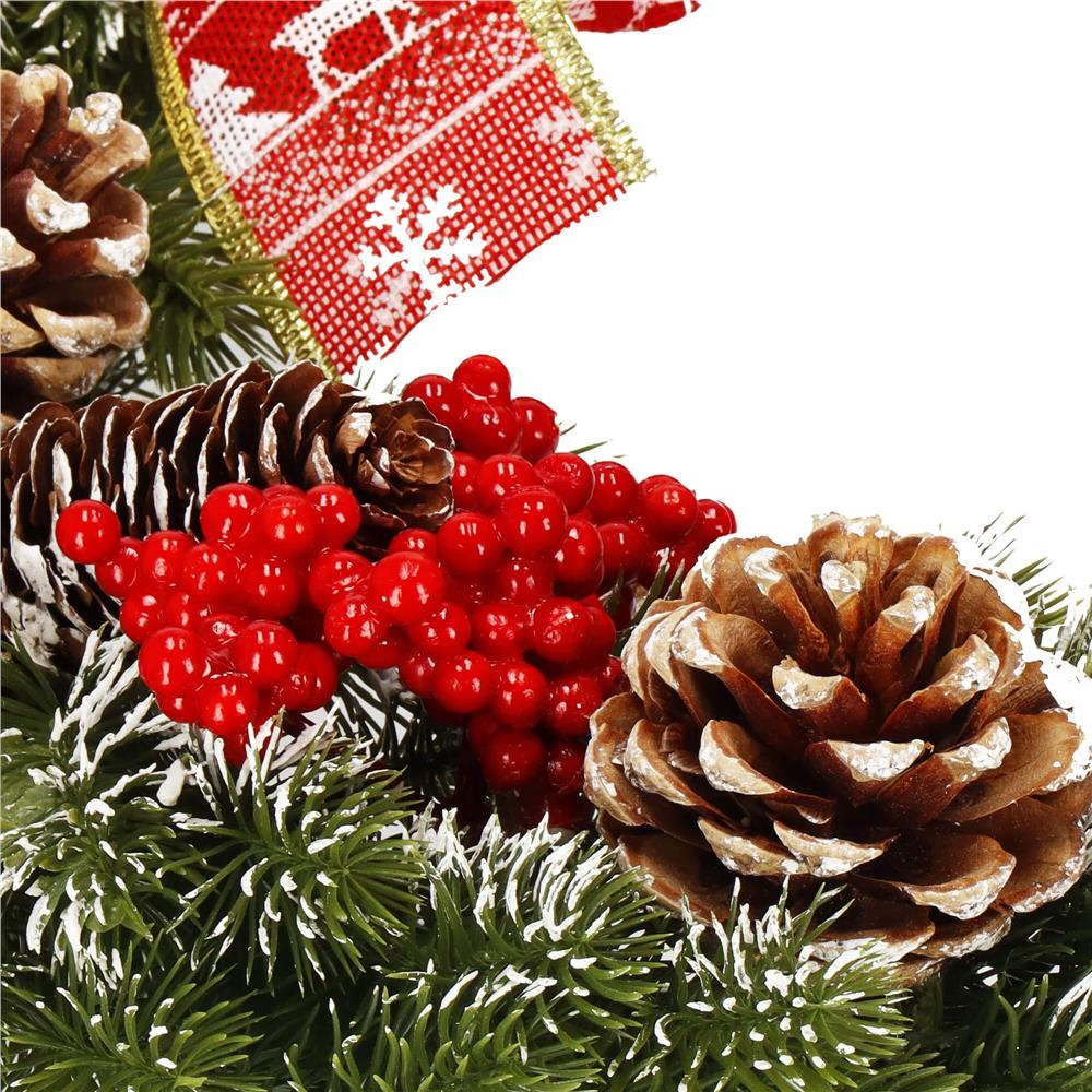 Coronita pentru Craciun, 40 cm, din brad artificial 3D, cu conuri si zapada, verde