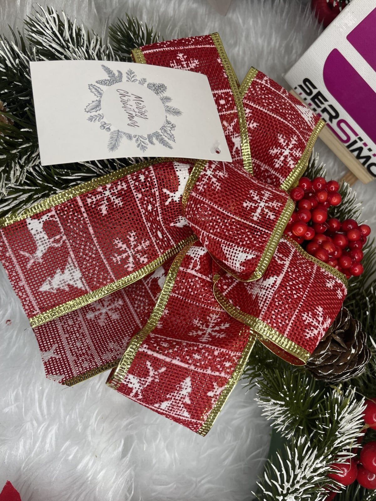 CORONITA DECORATIVA DE CRACIUN PENTRU USA SAU PERETE Culoare: verde, rosu, auriu Latime: aprox. 10-11 cm Diametrul coroanei: aproximativ 40 cm. Diametrul interior: aprox....