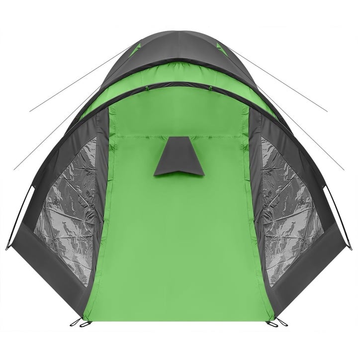 Cort camping 4 persoane cu antreu, impermeabil 3000 mm, 450x210x150 cm, negru si verde