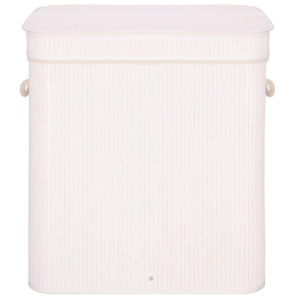 Cos de rufe din bambus cu capac, 2 compartimente, sac detasabil, volum 100L, 54x35x60cm, alb