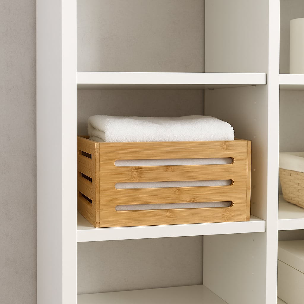 Specificatii tehnice Marca: 5Five Dimensiuni produs: 31 x 15 x 31 cm Material: Bambus Culoare: Natur Asamblare: Necesita asamblare Scurta descriere Cosul de depozitare din bambus masiv ofera o solutie eleganta si functionala pentru organizarea obiectelor mici. Cu un design compact si finisaj maro natural, se integreaza perfect pe rafturi sau in mobilierul deschis din baie, bucatarie sau dressing. Caracteristici principale Fabricat din bambus solid, durabil Design compact si modern Potrivit pentru rafturi sau dulapuri Ideal pentru organizarea accesoriilor si articolelor textile Aspect cald si natural, usor de integrat