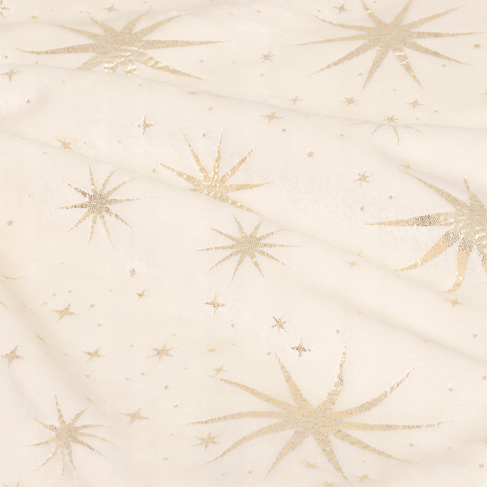 Covoras de pus sub bradul de Craciun, diametru 90 cm, cu stele aurii, alb
