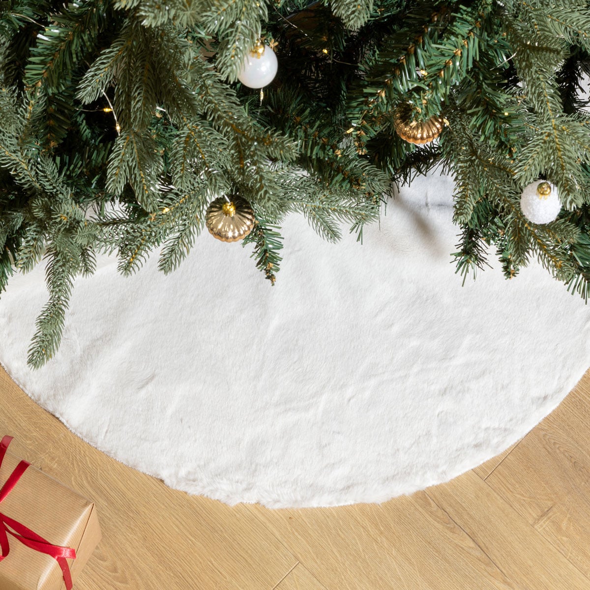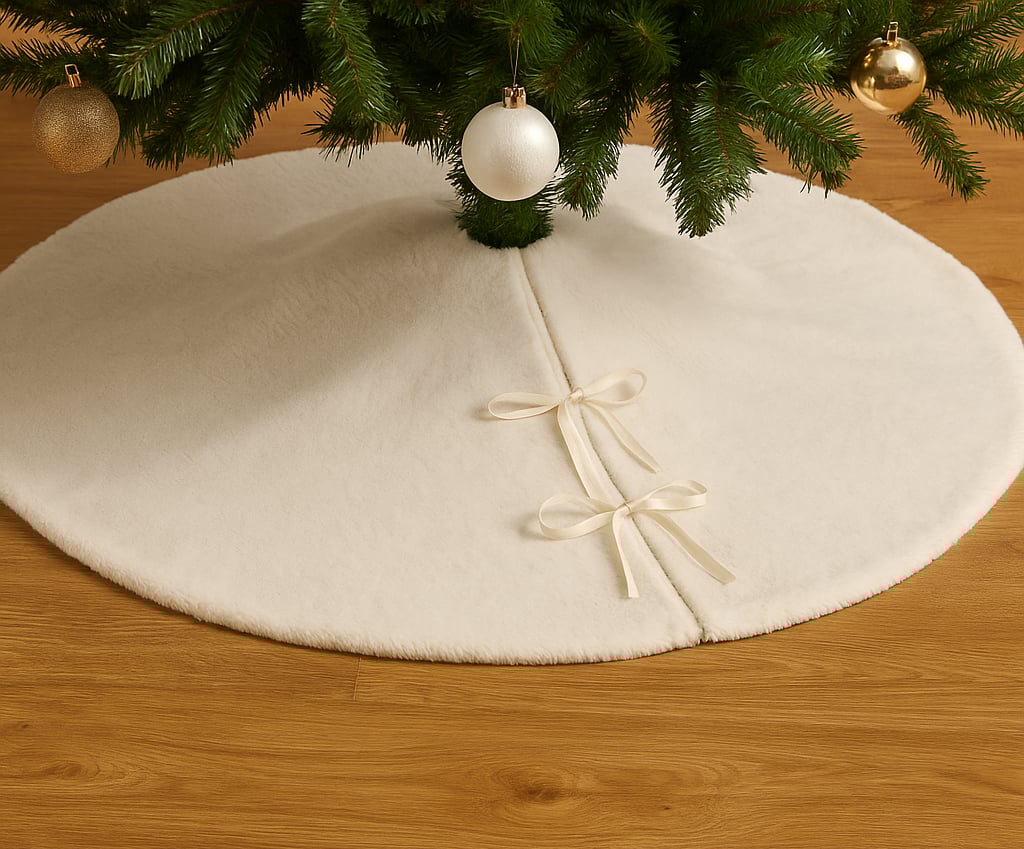 Covoras de pus sub bradul de Craciun, diametru 90 cm, din blana sintetica, alb