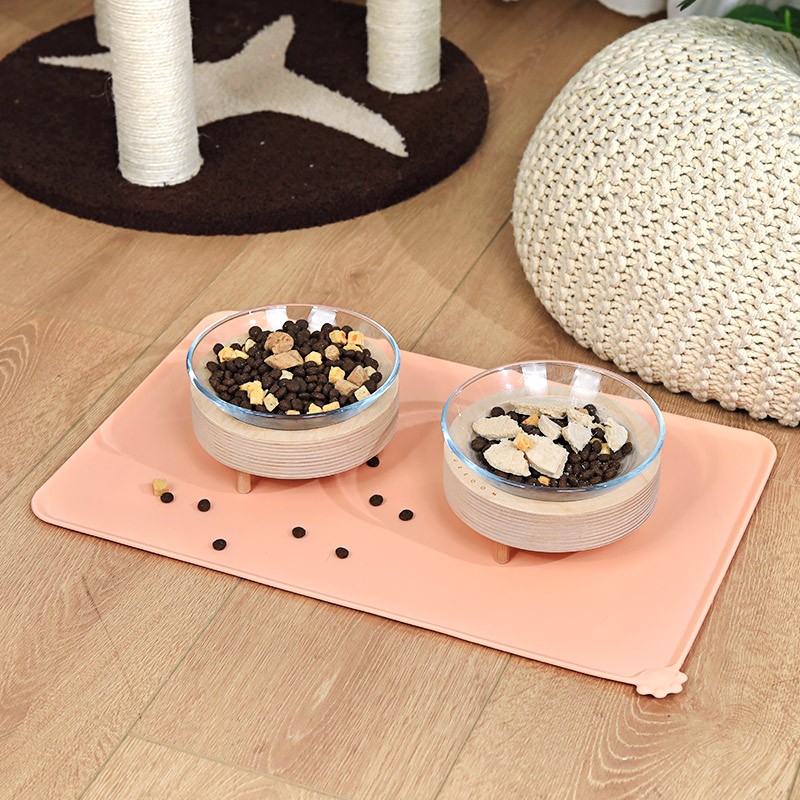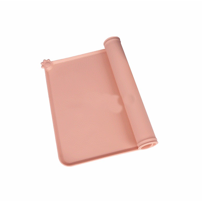 Covoras din silicon pentru animale , pentru bol de apa si mancare, antiderapant, margini ridicate pentru a mentine apa, 48.5x30 cm, Roz