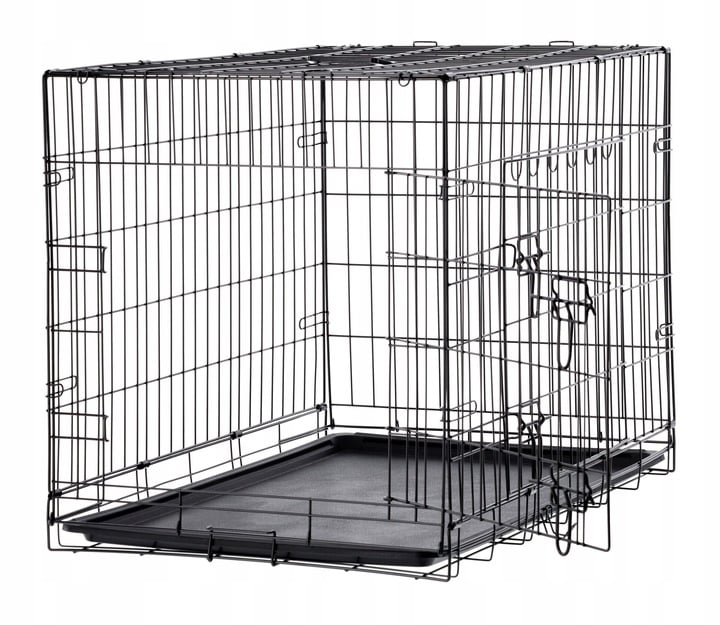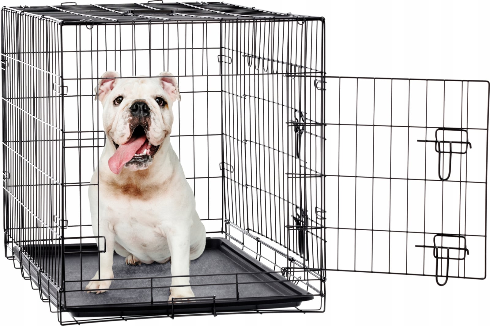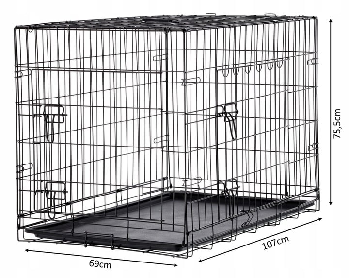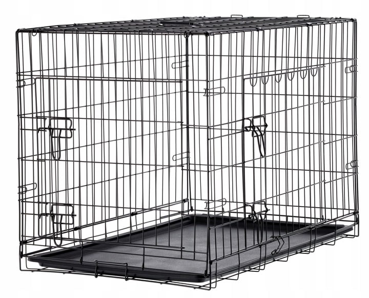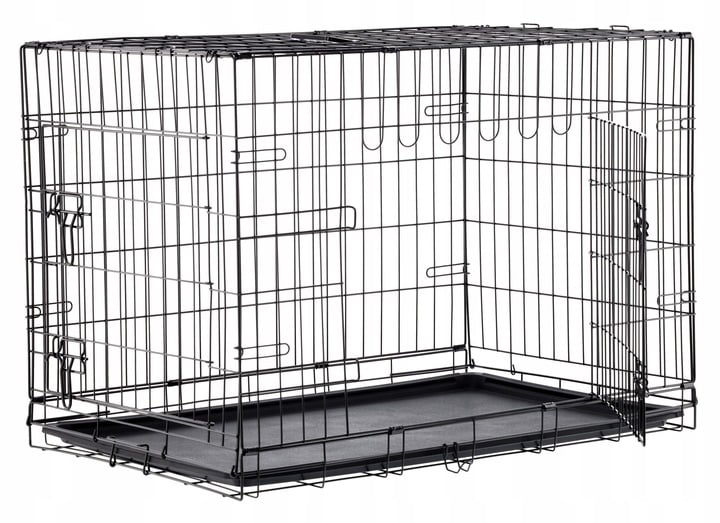Cusca metalica pliabila pentru animale, cu maner si tava detasabila, 107x69x76 cm, negru