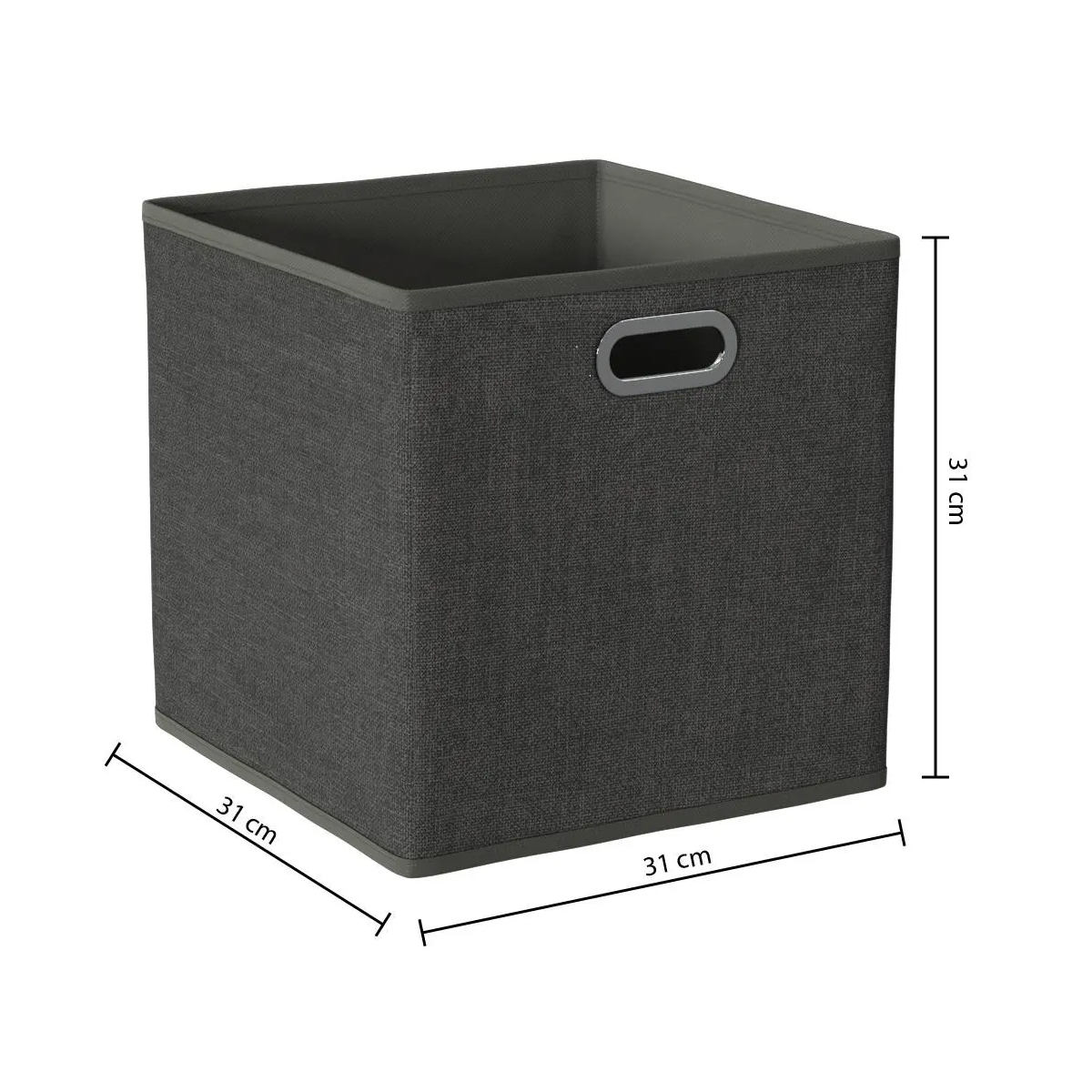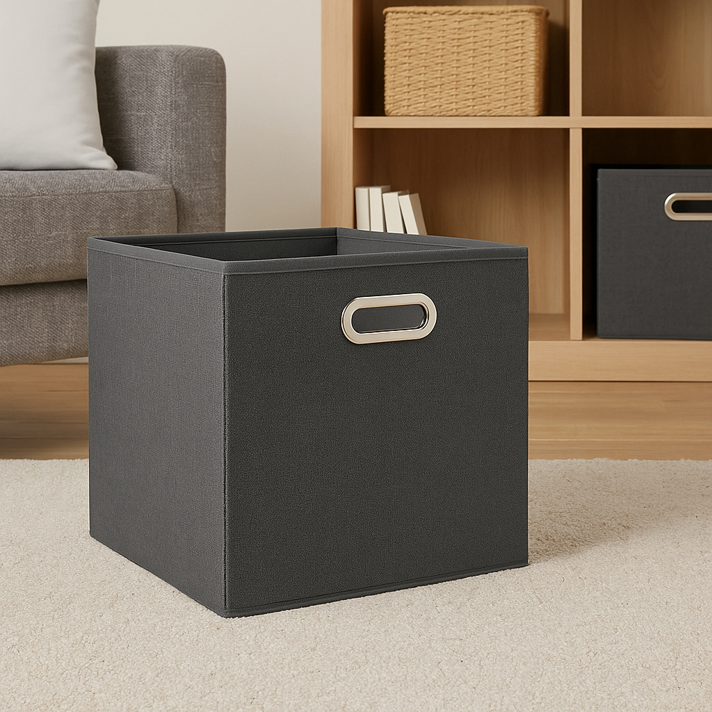 Specificatii tehnice Marca: 5Five Tip produs: Cutie pliabila pentru depozitare Culoare: Gri inchis Dimensiuni produs: 31,2 x 31 x 31,5 cm Material: Carton, polipropilena Scurta descriere Cutie de depozitare pliabila 5Five, in nuanta gri inchis, ideala pentru organizarea rafturilor, dulapurilor sau bibliotecilor. Este realizata din carton si polipropilena, fiind usoara, dar rezistenta, si se pliaza rapid cand nu este utilizata. Caracteristici principale Design modern si practic Material usor si rezistent Se pliaza pentru economie de spatiu Potrivita pentru rafturi si dulapuri Culoare eleganta gri inchis