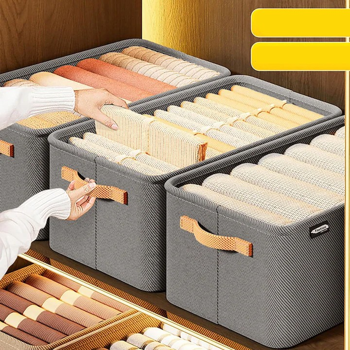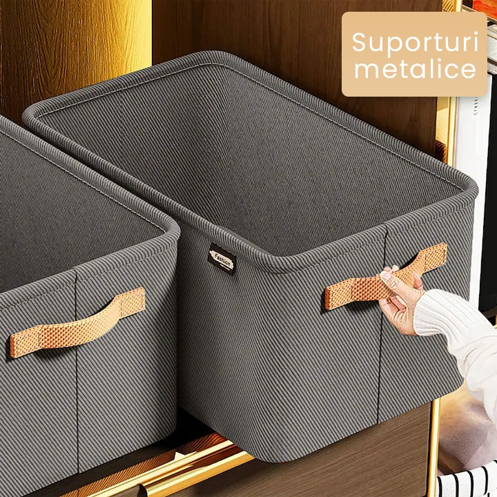 Cutie Depozitare , pentru Haine, lucruri, din Textil cu Cadru Metalic, Manere Laterale, forma Dreptunghiulara, 48 x 28 x 25 cm, volum 34 L Gri