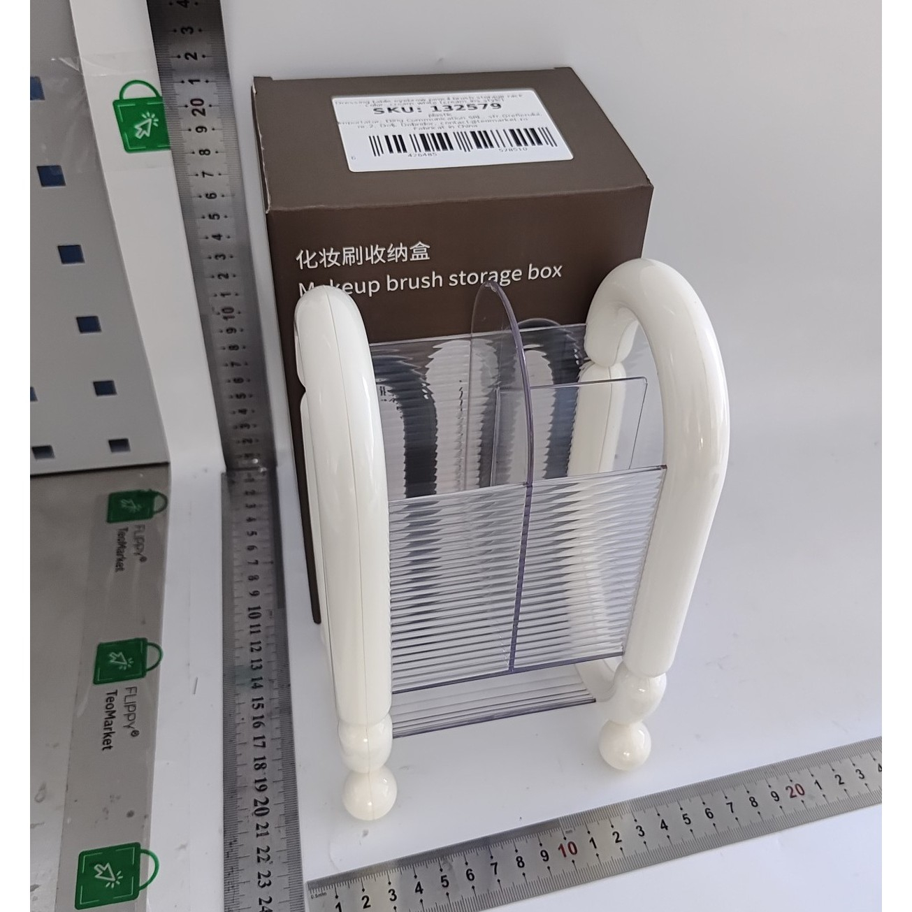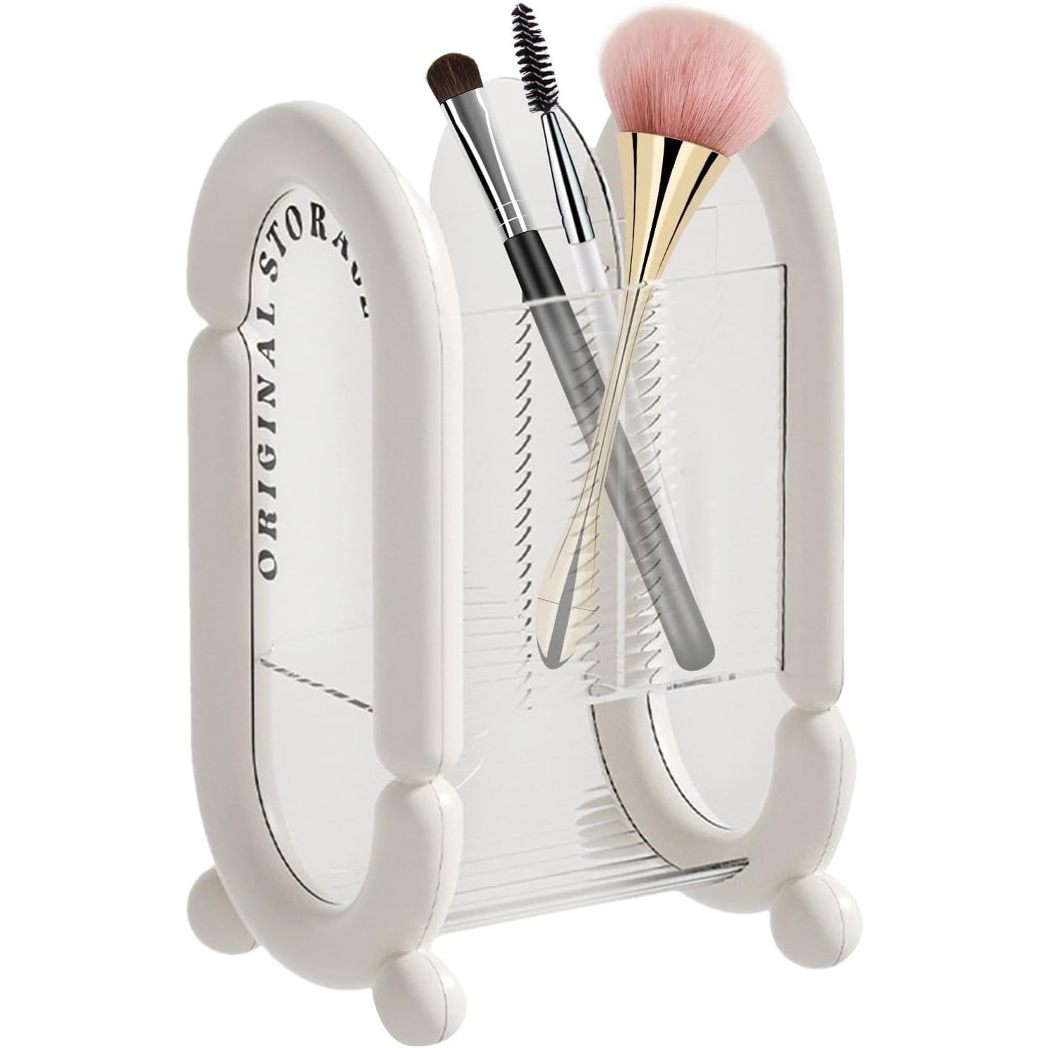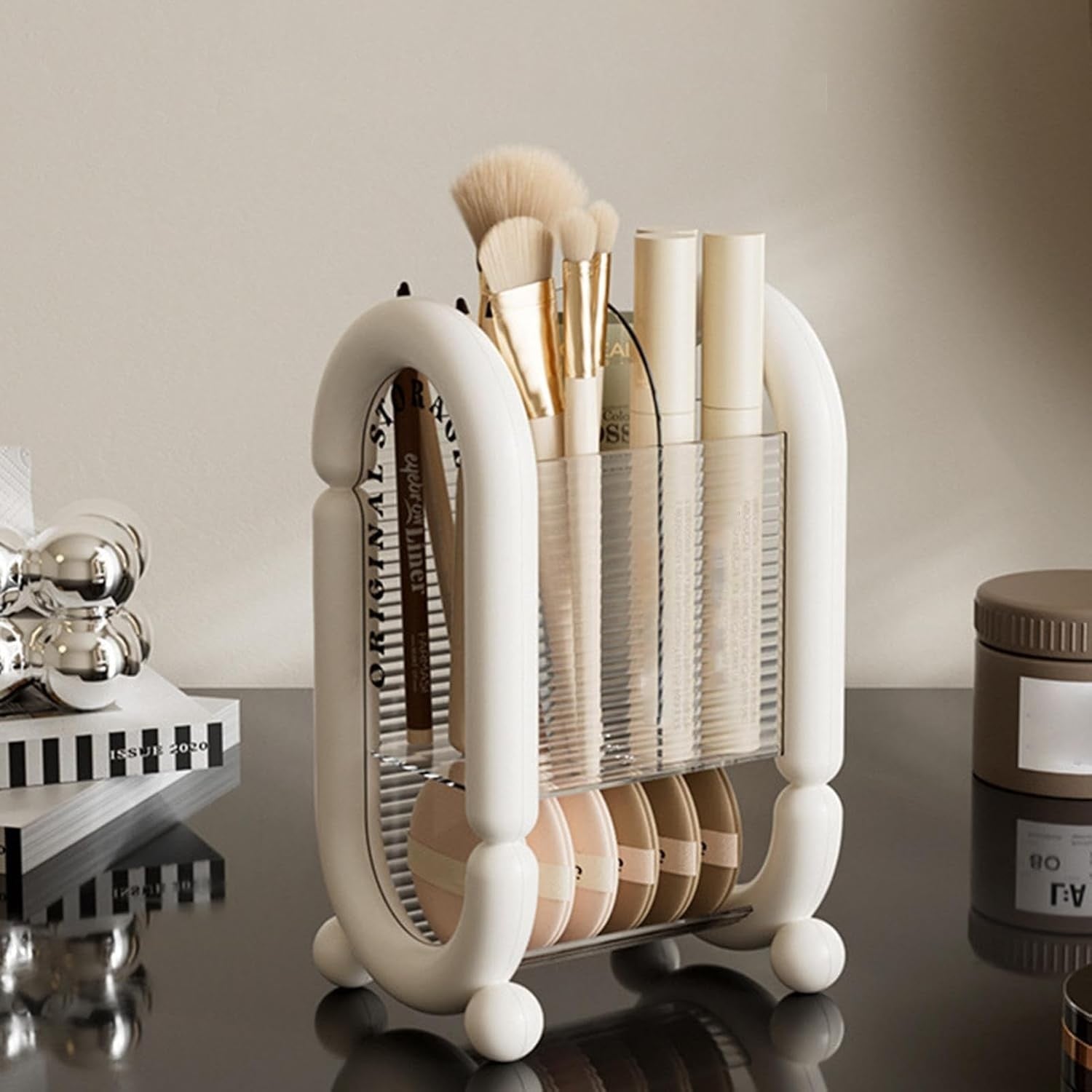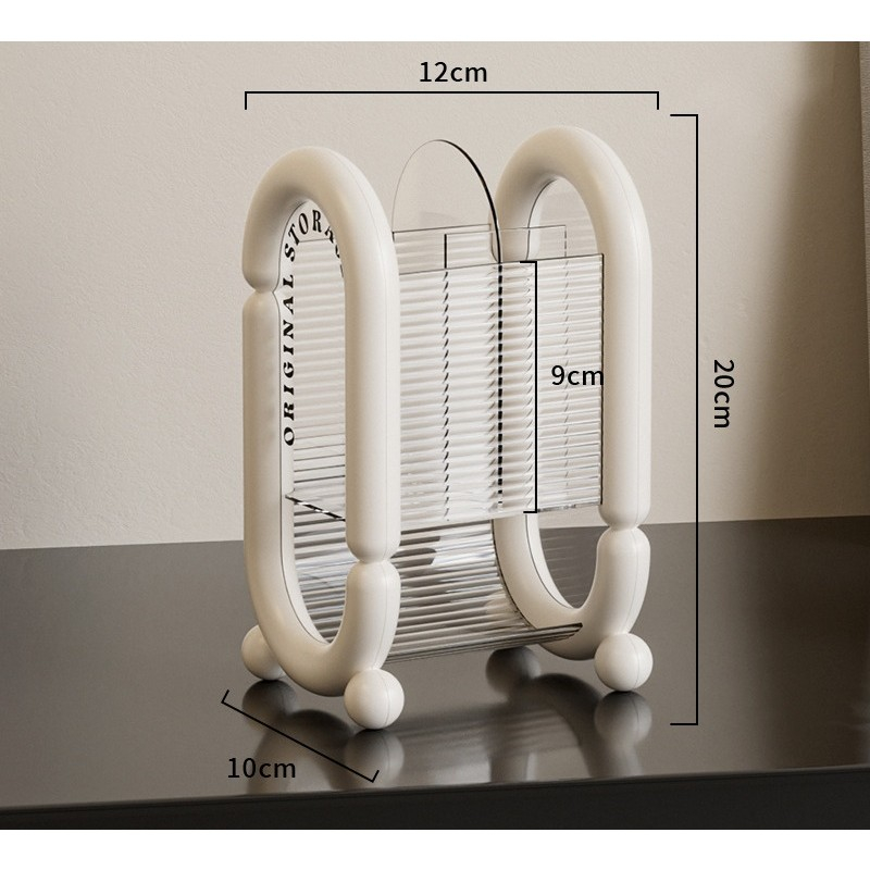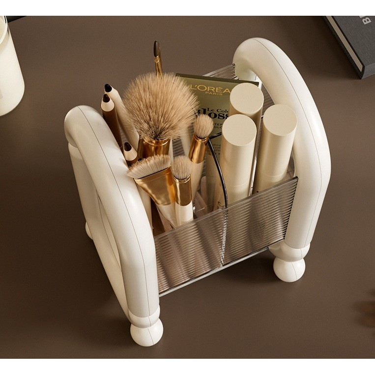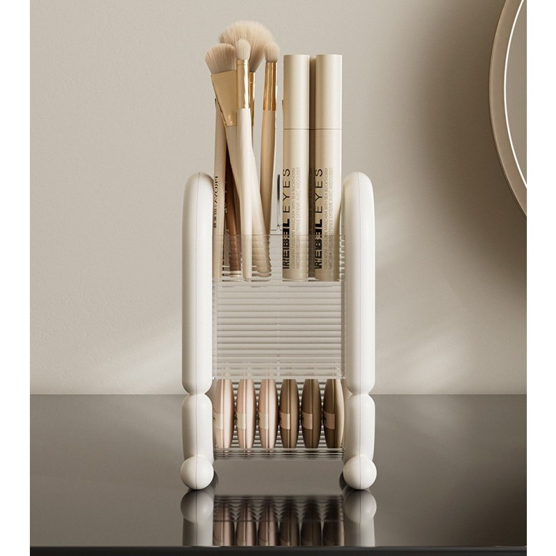 Organizează-ți produsele cosmetice cu această cutie de depozitare , concepută special pentru a păstra pensulele, creioanele și burețeii de machiaj într-un singur loc. Cu un design compact și elegant, este ideală pentru a adăuga ordine și stil zonei tale de machiaj.