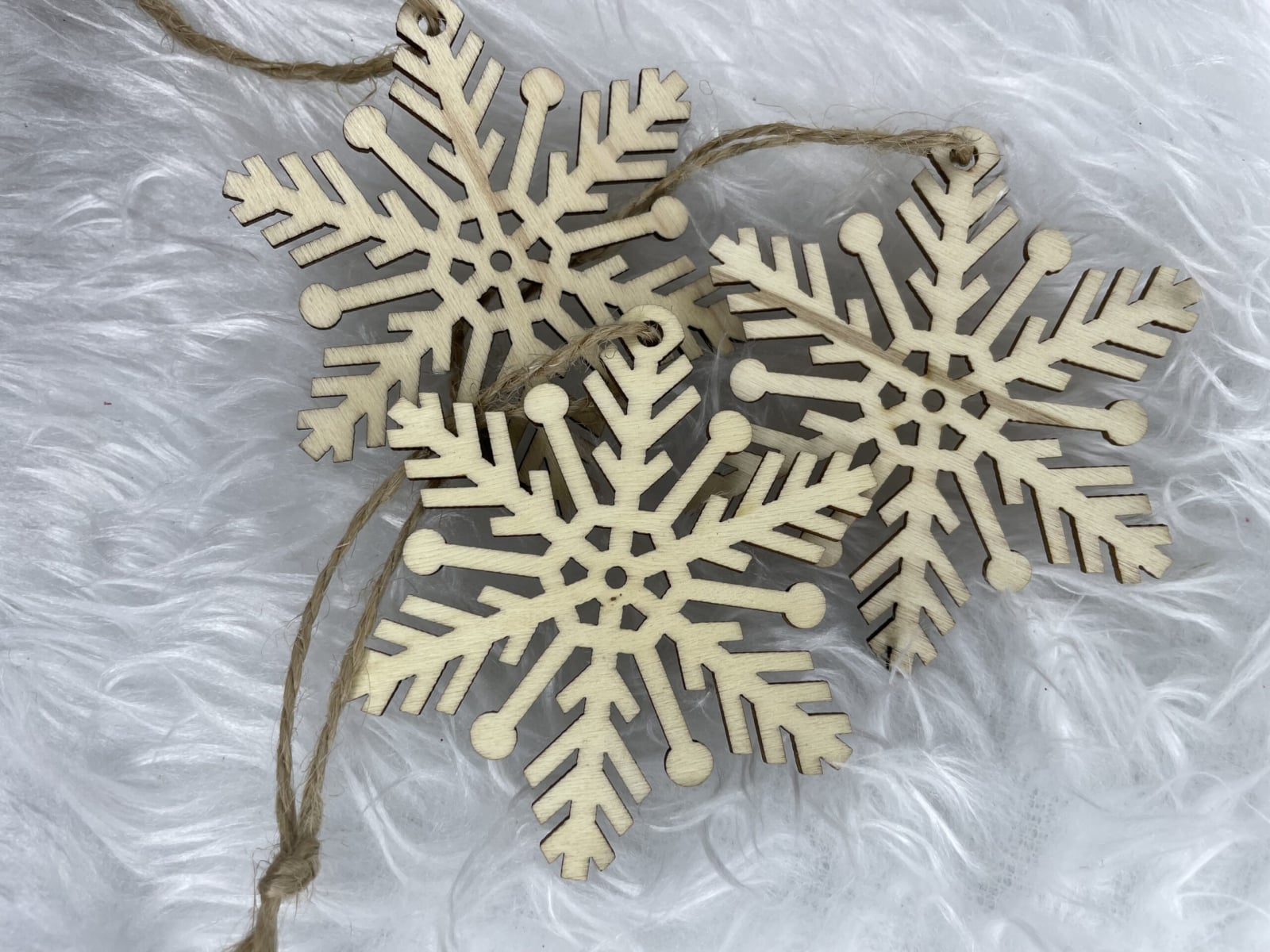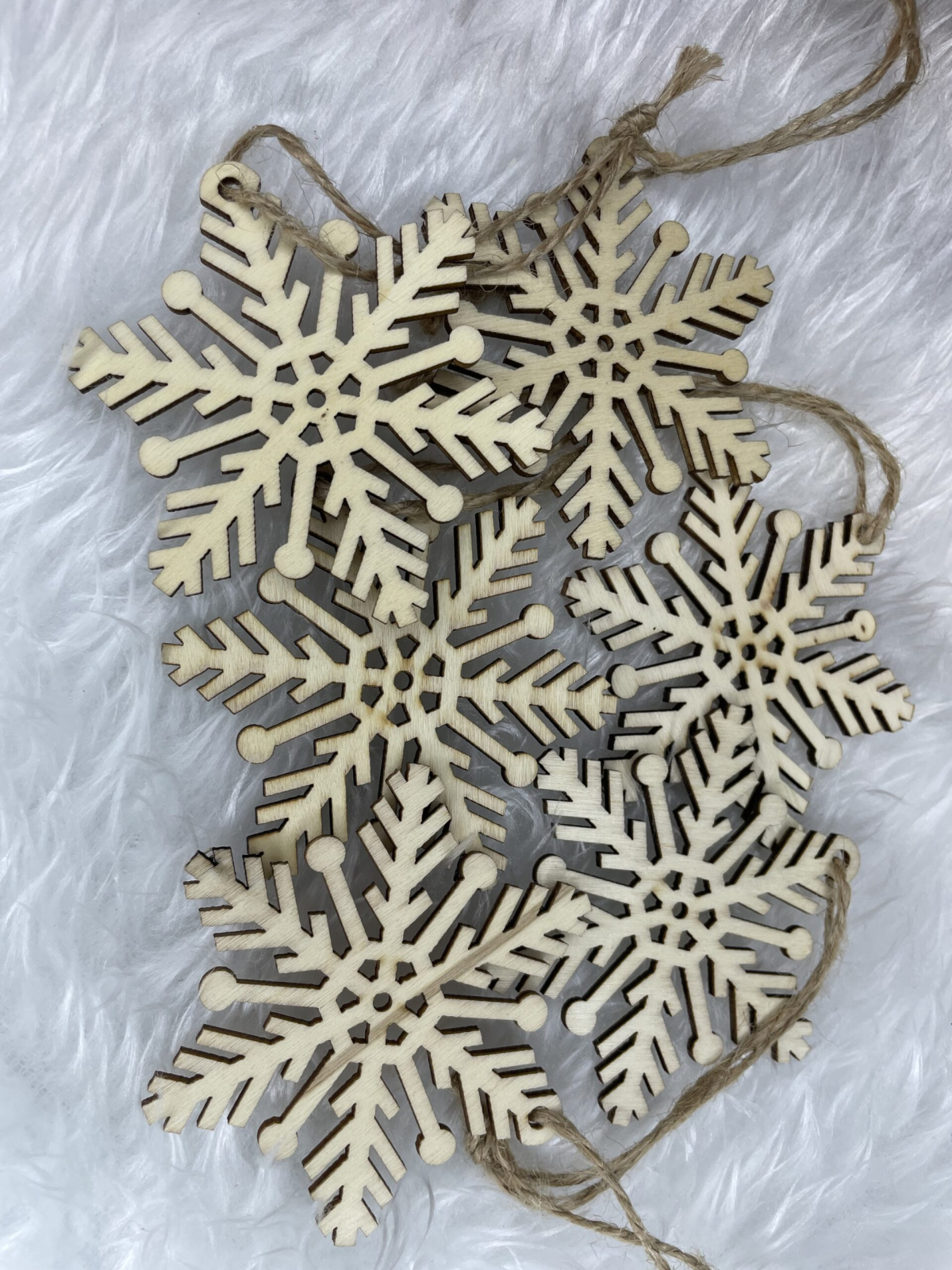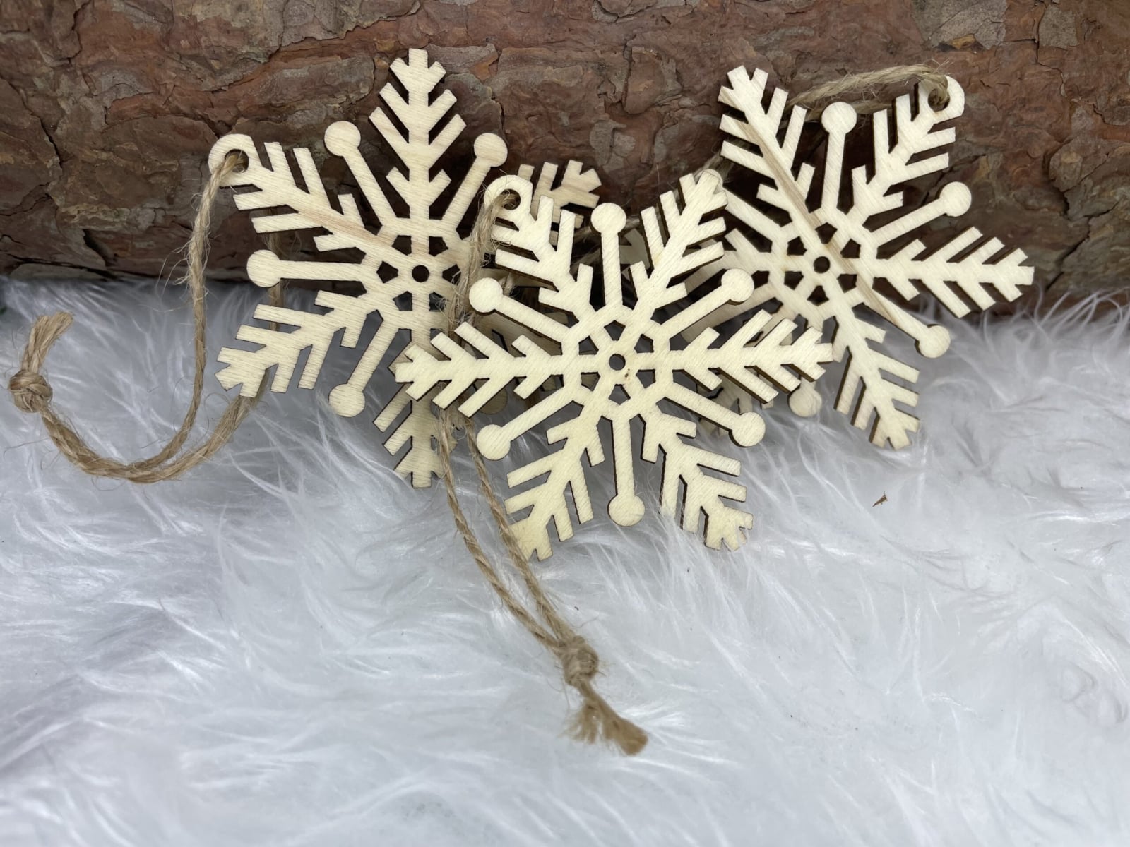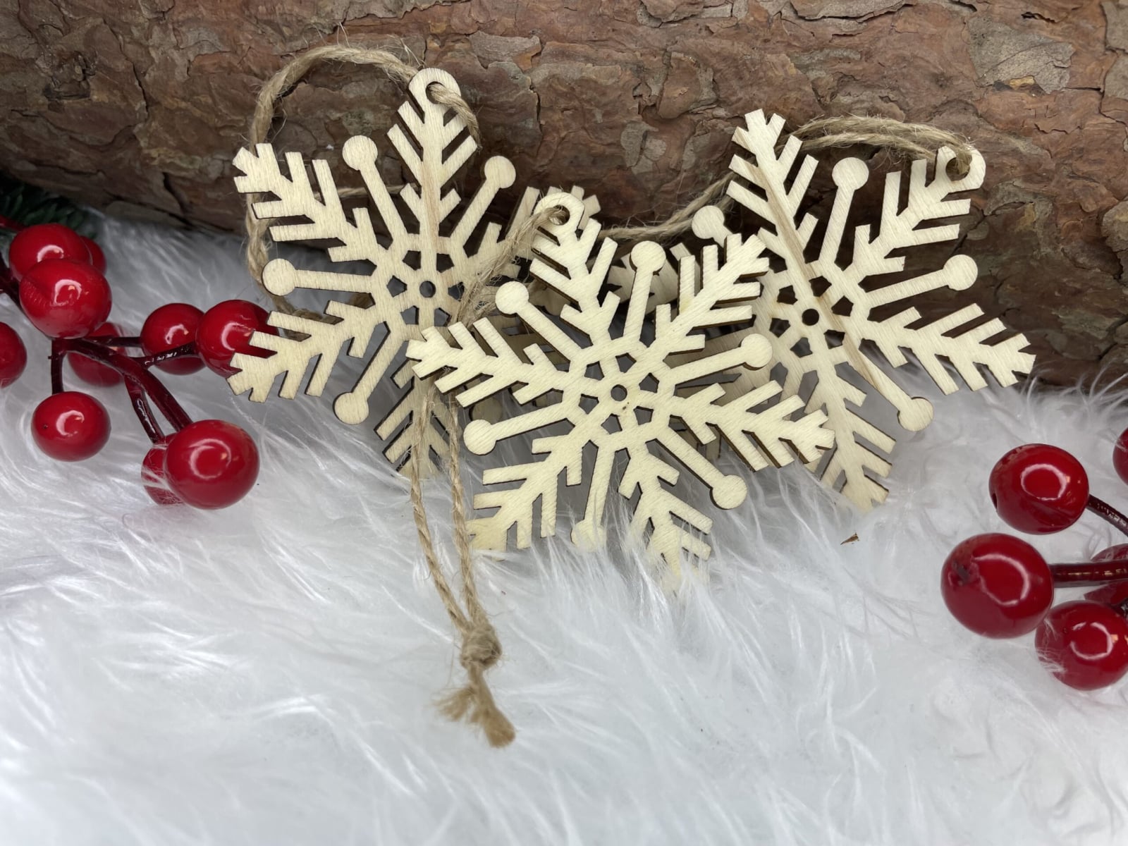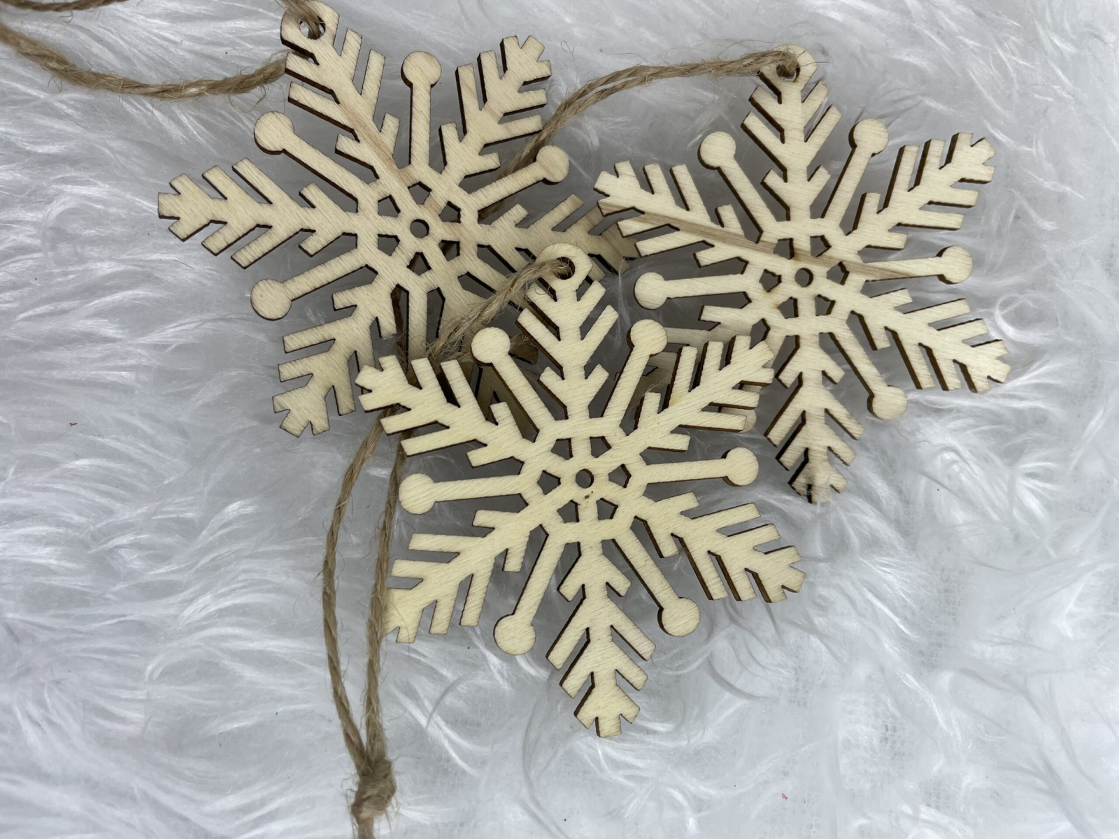 Model: fulgi de nea Culoare: lemn brut Material: lemn Numar de piese: 6 Avantaje: snururi de iuta care nu se sparg, GRATUIT pentru agatat Craciunul,...
