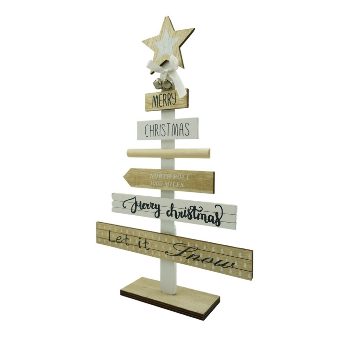 Decoratiune masa decorata, Mesaje Craciun, Crem-Alb, din Lemn, 22.5 cm x 36 cm, Interior,