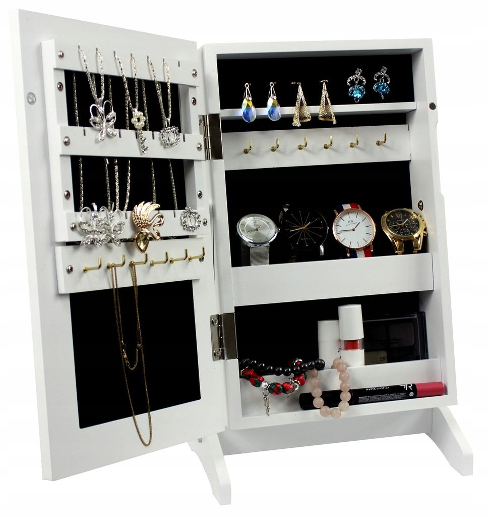 MASUTA DE TOALETA ALBA - VICTORIA MINIDulapul de bijuterii cu oglinda este cu siguranta o idee de cadou excelenta pentru orice femeie. Acesta poate gazdui un numar mare de coliere, inele, bratari si ceasuri. Interiorul tapitat adauga farmec si eleganta, iar oglinda exterioara este, dupa cum toata lumea stie, un element indispensabil in orice dormitor.Oglinda transparentaCaptusit cu plus moaleCarlige si rafturi pentru bijuteriiStil victorian modernFabricat din placi de mobilier MDFIncuiat cu un magnetAmbalate cu grija pentru transport*Articolele prezentate in imagine (bijuterii) nu fac parte din masa de toaleta
