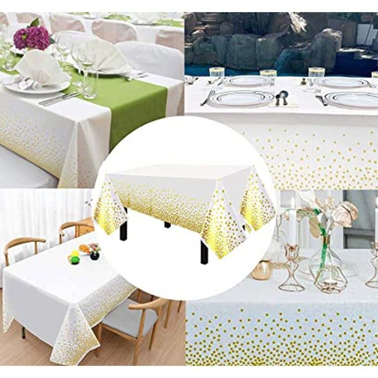 Adaugă un strop de strălucire evenimentului tău cu această față de masă , decorată cu stele aurii pentru un efect elegant și festiv. Fabricată din folie metalizată PET/poliester, această față de masă este rezistentă la apă, protejând eficient suprafața mesei și fiind ușor de curățat.