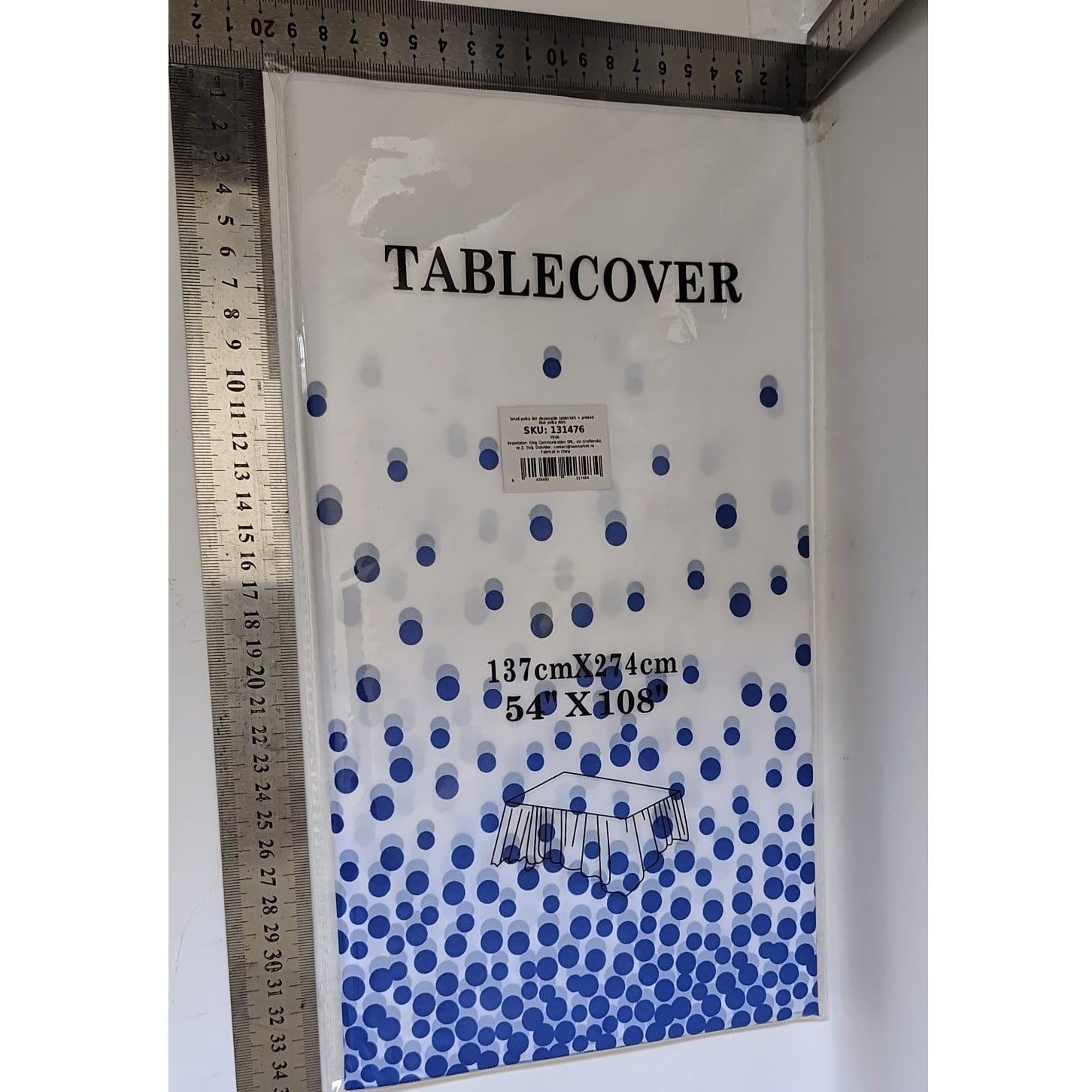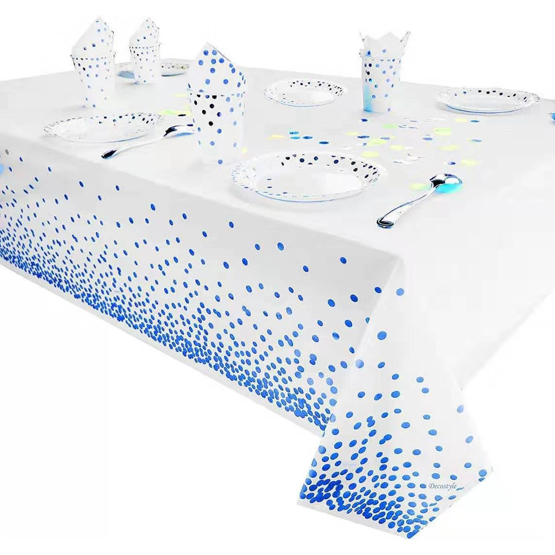 Fata de Masa, , din PEVA, Imprimeu Buline, 137 x 274 cm, Impermeabila, Fara Pete, Curatare Rapida, Albastru