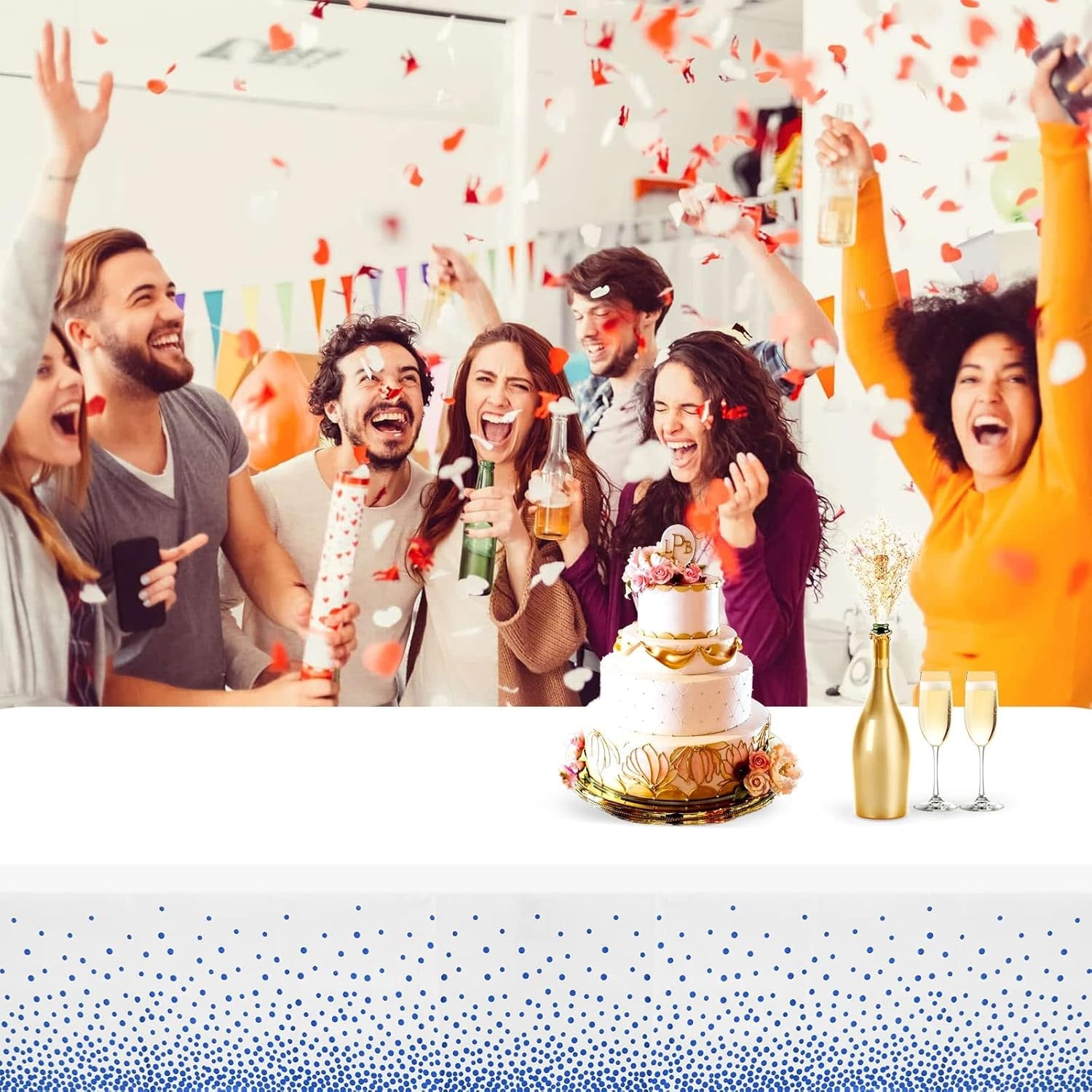 Transformă masa ta într-un decor elegant și festiv cu această față de masă din PEVA, decorată cu un imprimeu modern cu buline. Impermeabilă și anti-pete, este ideală pentru evenimente speciale precum nunți, botezuri, petreceri aniversare sau cine elegante.