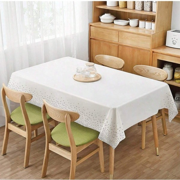 Fata de Masa, , din PEVA, Imprimeu Buline, 137 x 274 cm, Impermeabila, Fara Pete, Curatare Rapida, Argintiu