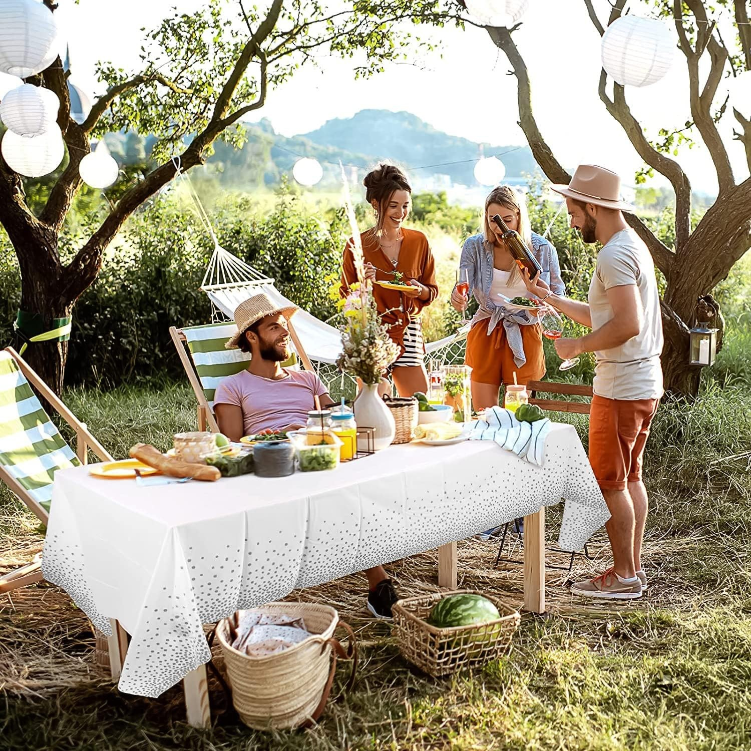 Transformă masa ta într-un decor elegant și festiv cu această față de masă din PEVA, decorată cu un imprimeu modern cu buline. Impermeabilă și anti-pete, este ideală pentru evenimente speciale precum nunți, botezuri, petreceri aniversare sau cine elegante.