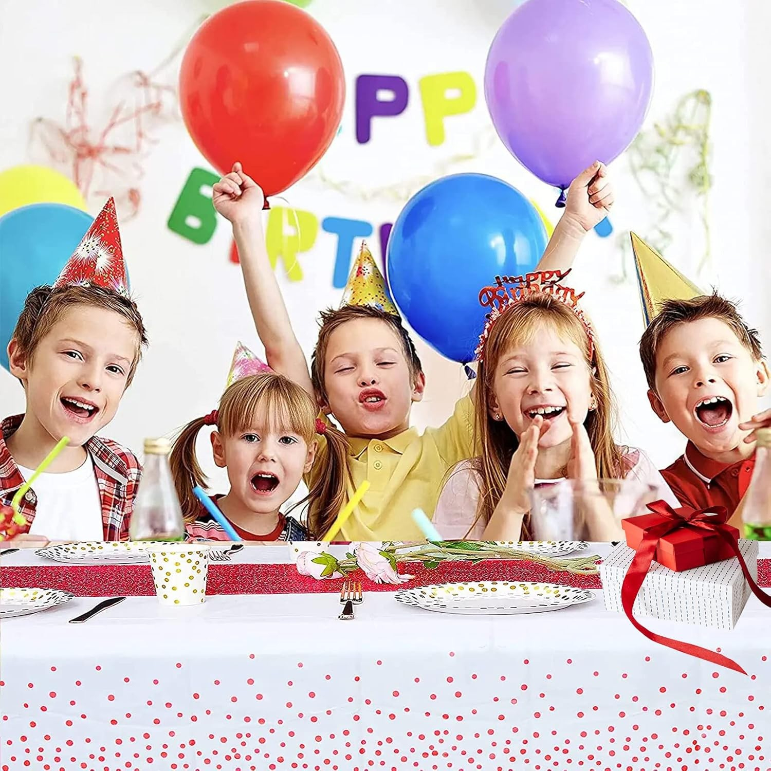 Transformă masa ta într-un decor elegant și festiv cu această față de masă din PEVA, decorată cu un imprimeu modern cu buline. Impermeabilă și anti-pete, este ideală pentru evenimente speciale precum nunți, botezuri, petreceri aniversare sau cine elegante.