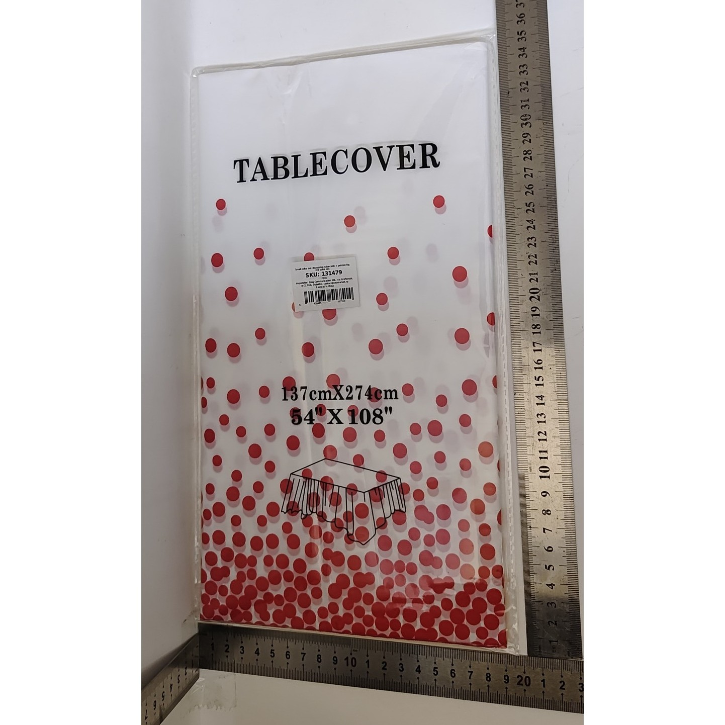 Fata de Masa, , din PEVA, Imprimeu Buline, 137 x 274 cm, Impermeabila, Fara Pete, Curatare Rapida, Rosu