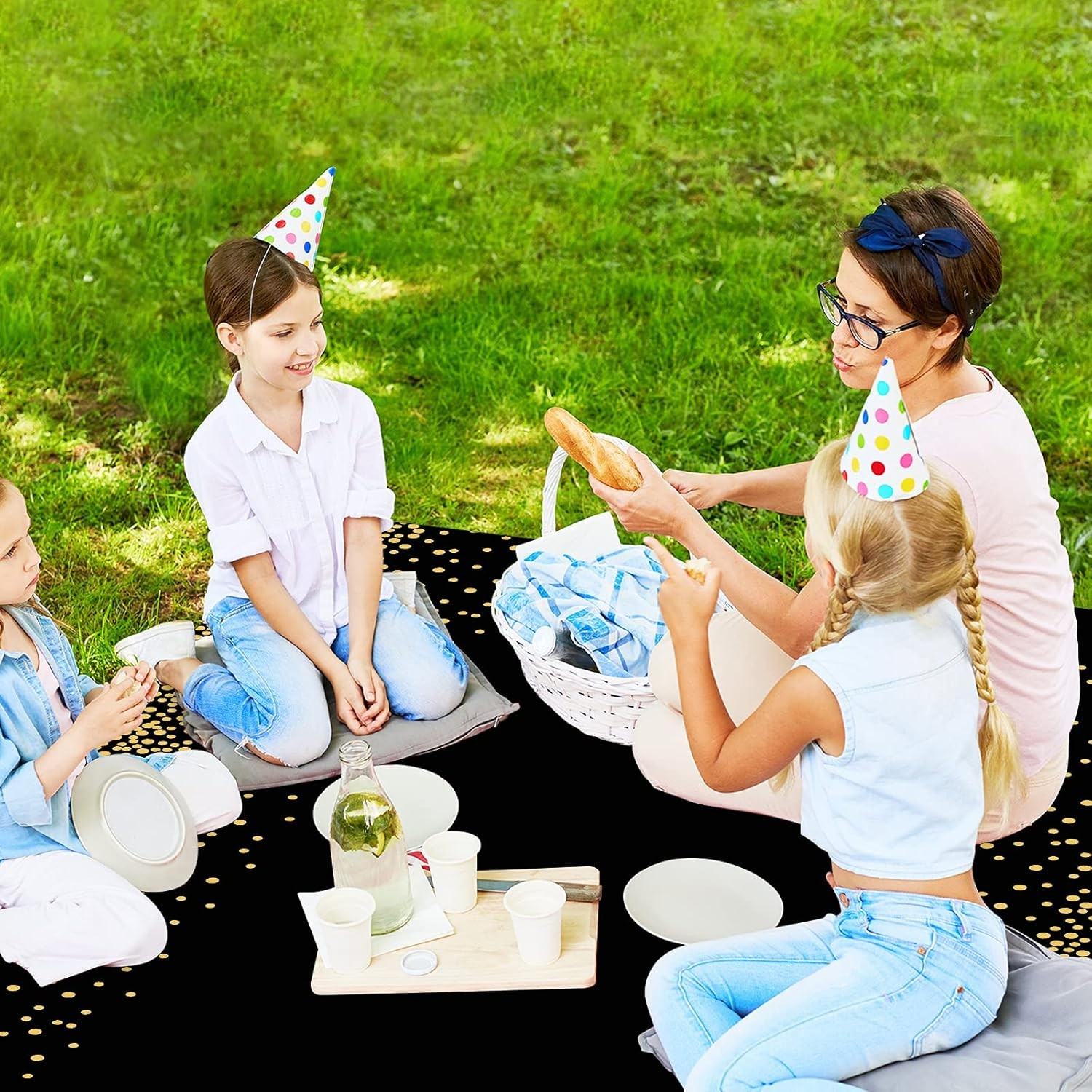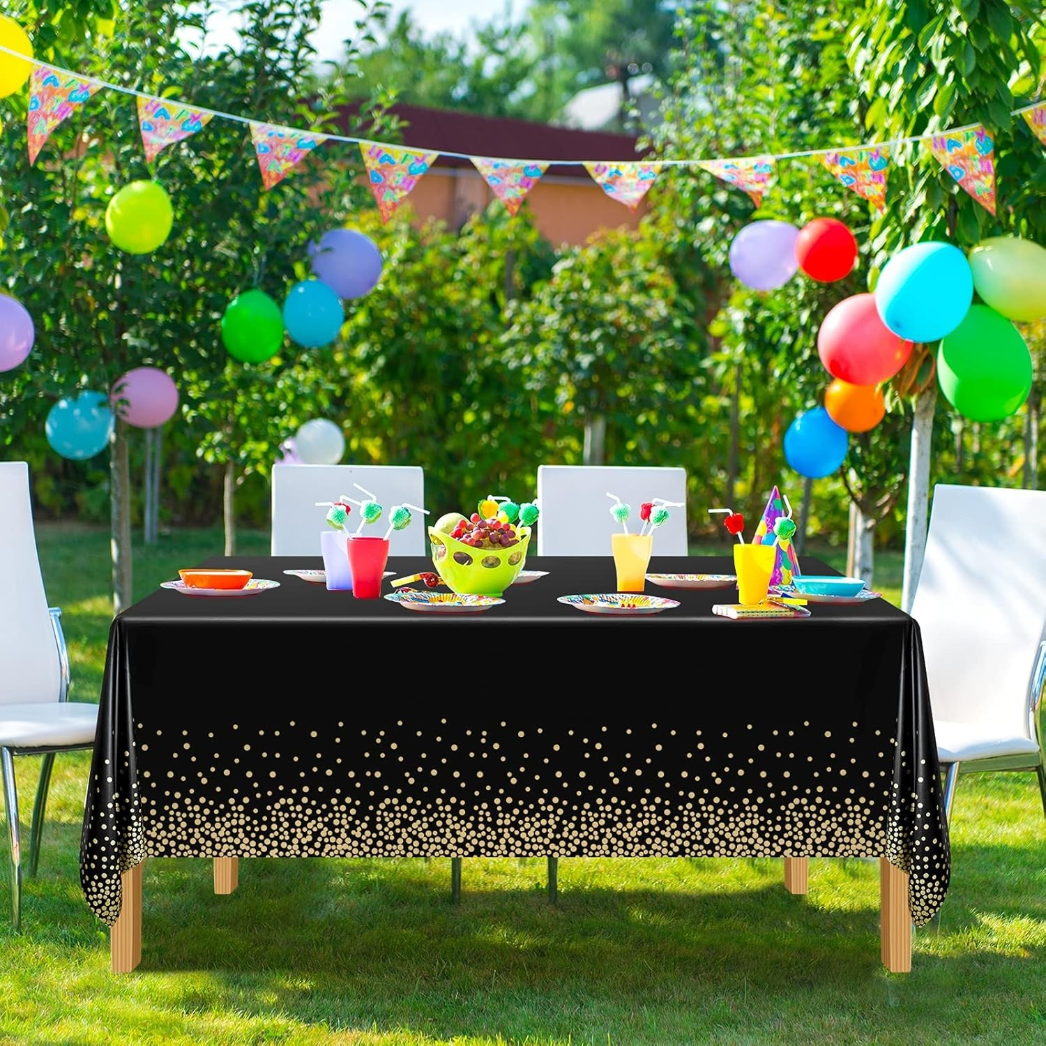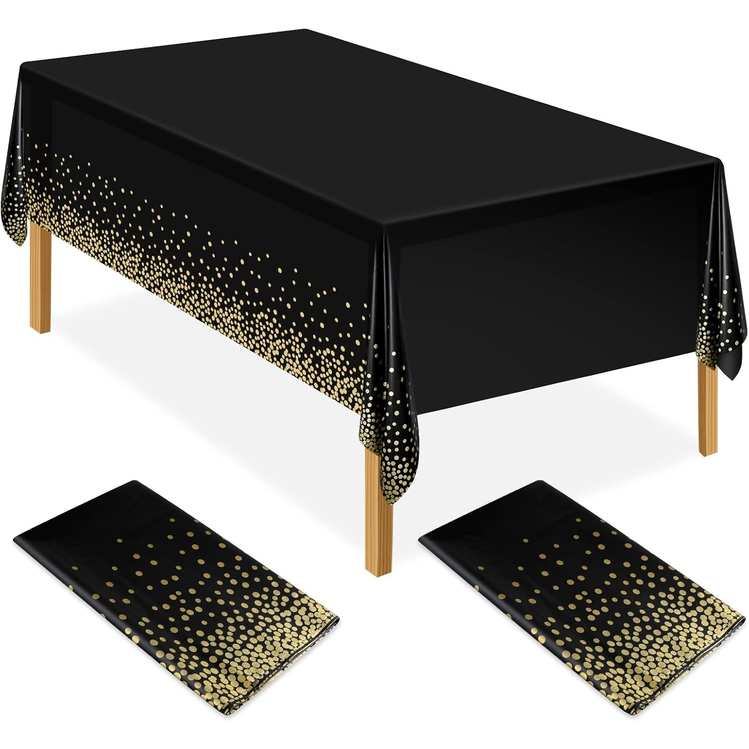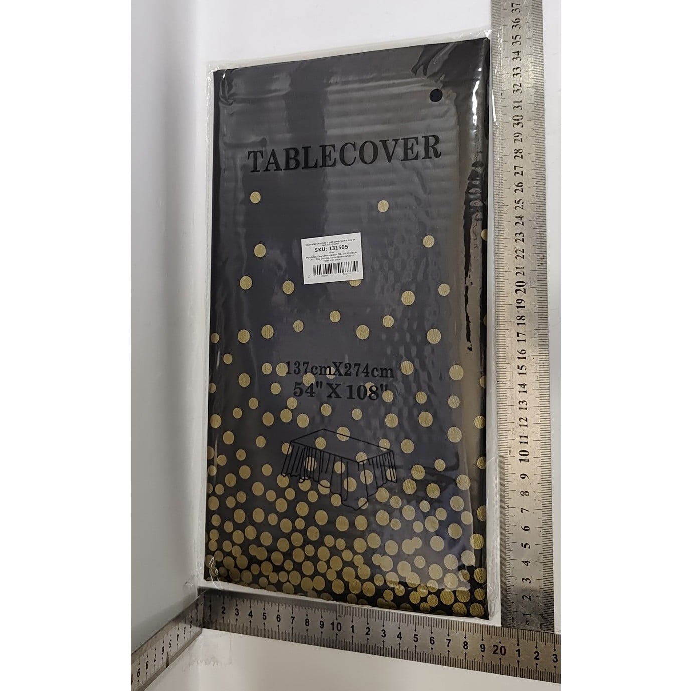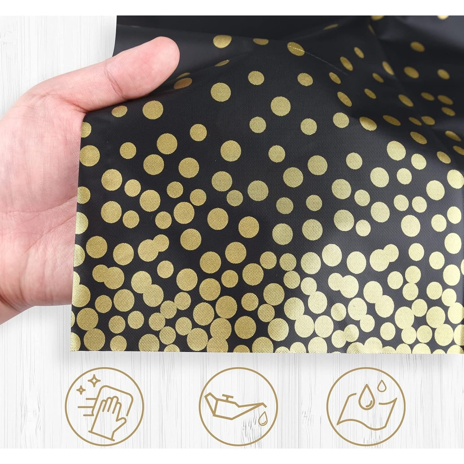 Fata de Masa, , din PEVA, Imprimeu Buline Aurii, 137 x 274 cm, Impermeabila, Fara Pete, Curatare Rapida, Negru
