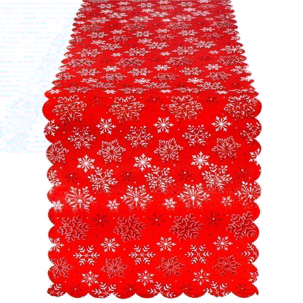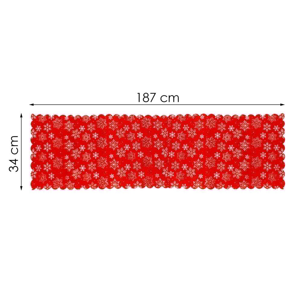 Fata de masa pentru decor, cu motive de Craciun, din stofa, 34x187cm, rosu
