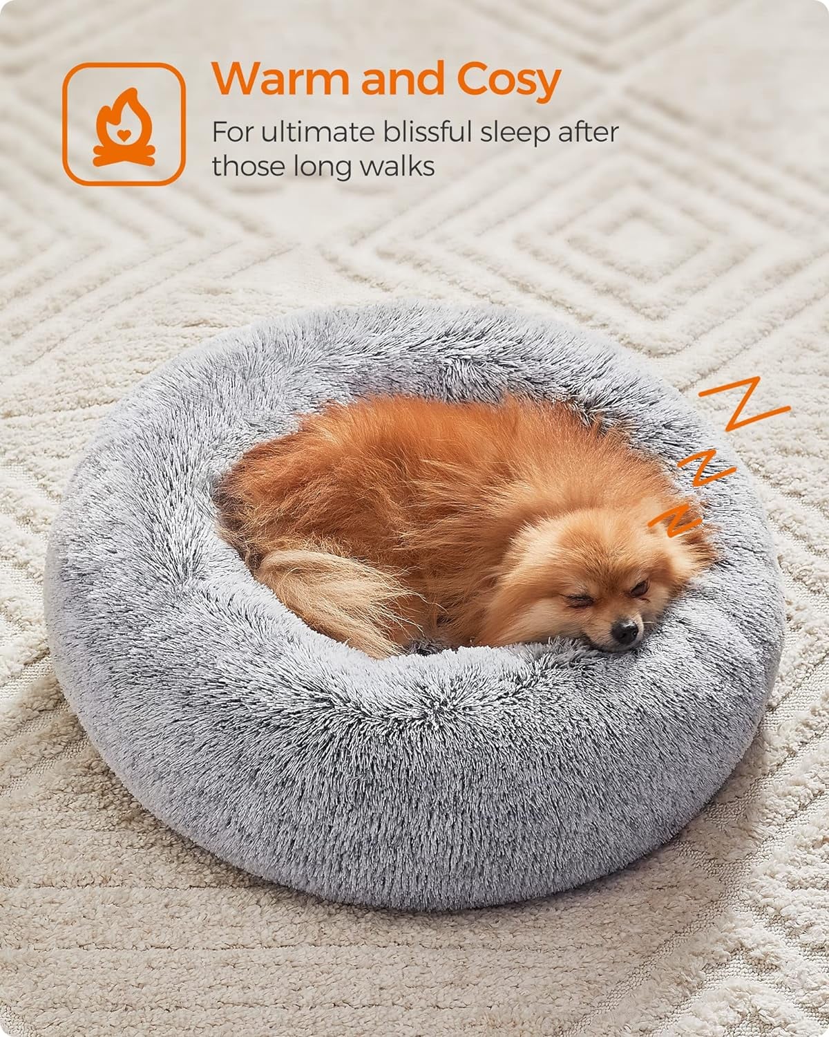 FEANDREA Pat pufos pentru caini si pisici, cu husa detasabila, lavabila, plus moale cu fir lung, 60 cm, gri