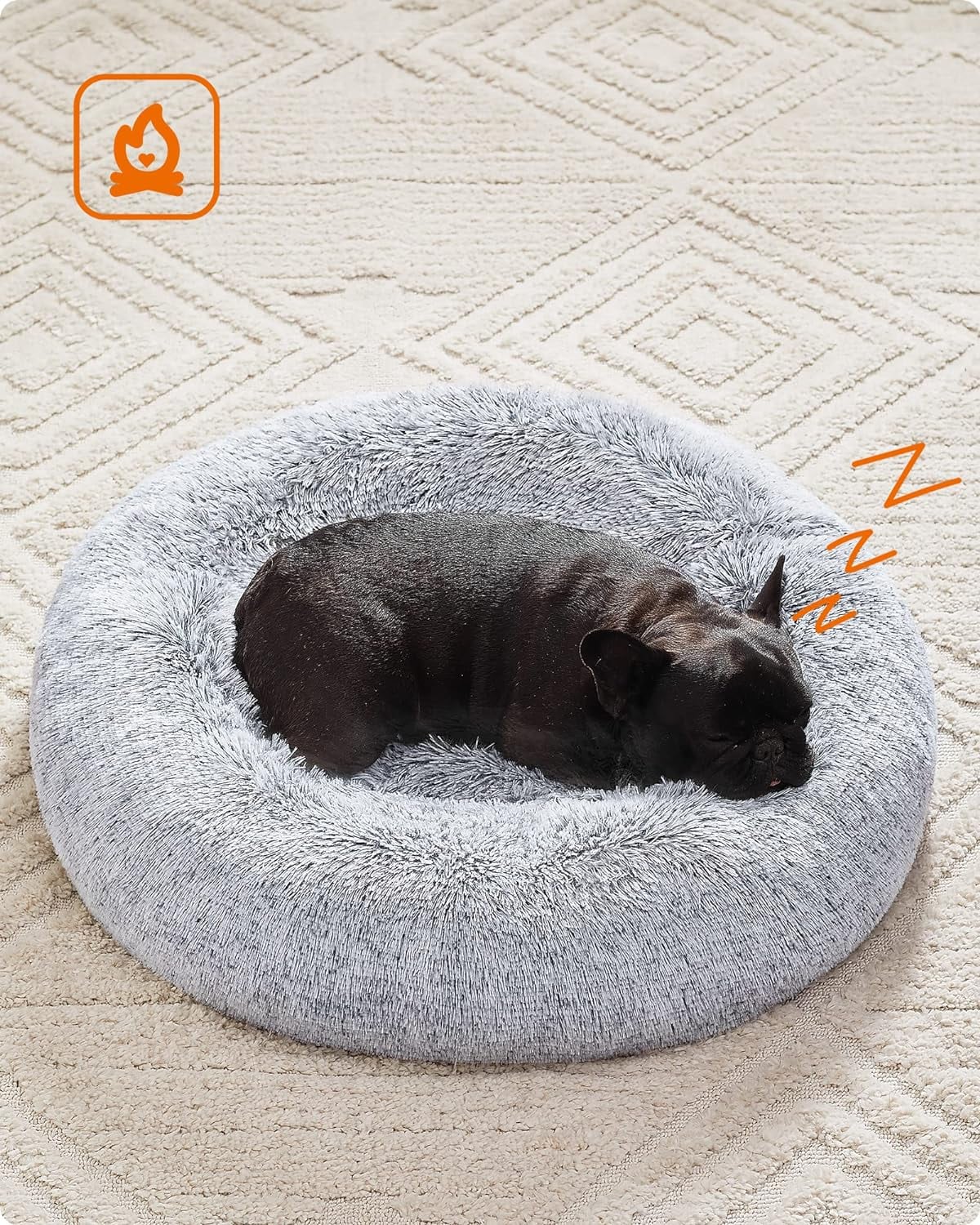 FEANDREA Pat pufos pentru caini si pisici, cu husa detasabila, lavabila, plus moale cu fir lung, 70 cm, gri