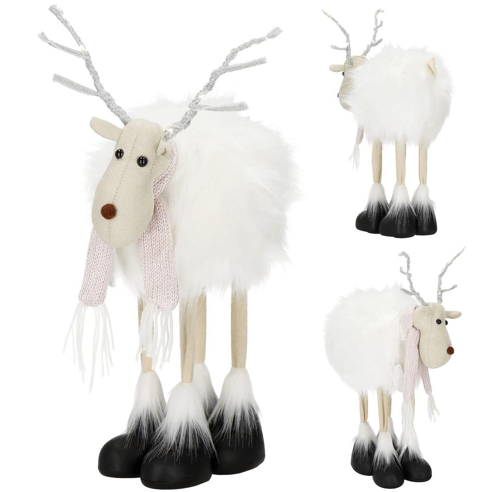 Figurina Craciun, Ren alb cu fular, inaltime 48cm