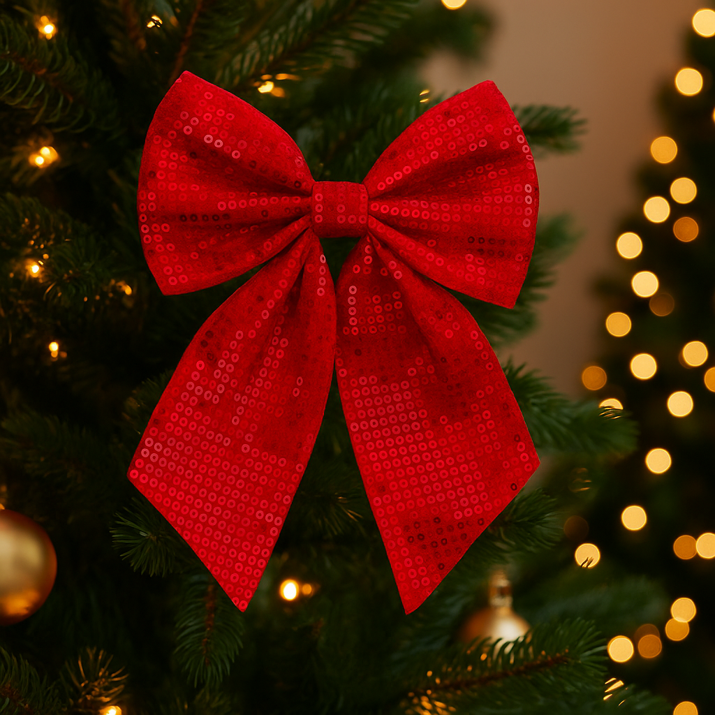 Specificatii tehnice Culoare: Rosu Material: Poliester Dimensiuni produs: 20 x 3 x 24 cm Scurta descriere Fundita decorativa cu paiete rosii adauga un plus de stralucire si eleganta decorului de sarbatoare. Ideala pentru bradul de Craciun, coronite sau aranjamente festive, aceasta fundita din poliester are o textura lucioasa si vibranta care prinde perfect lumina. Caracteristici principale Design elegant, cu paiete rosii stralucitoare Realizata din poliester de calitate Culoare intensa, perfecta pentru decoruri de Craciun Usor de prins pe brad sau alte decoratiuni