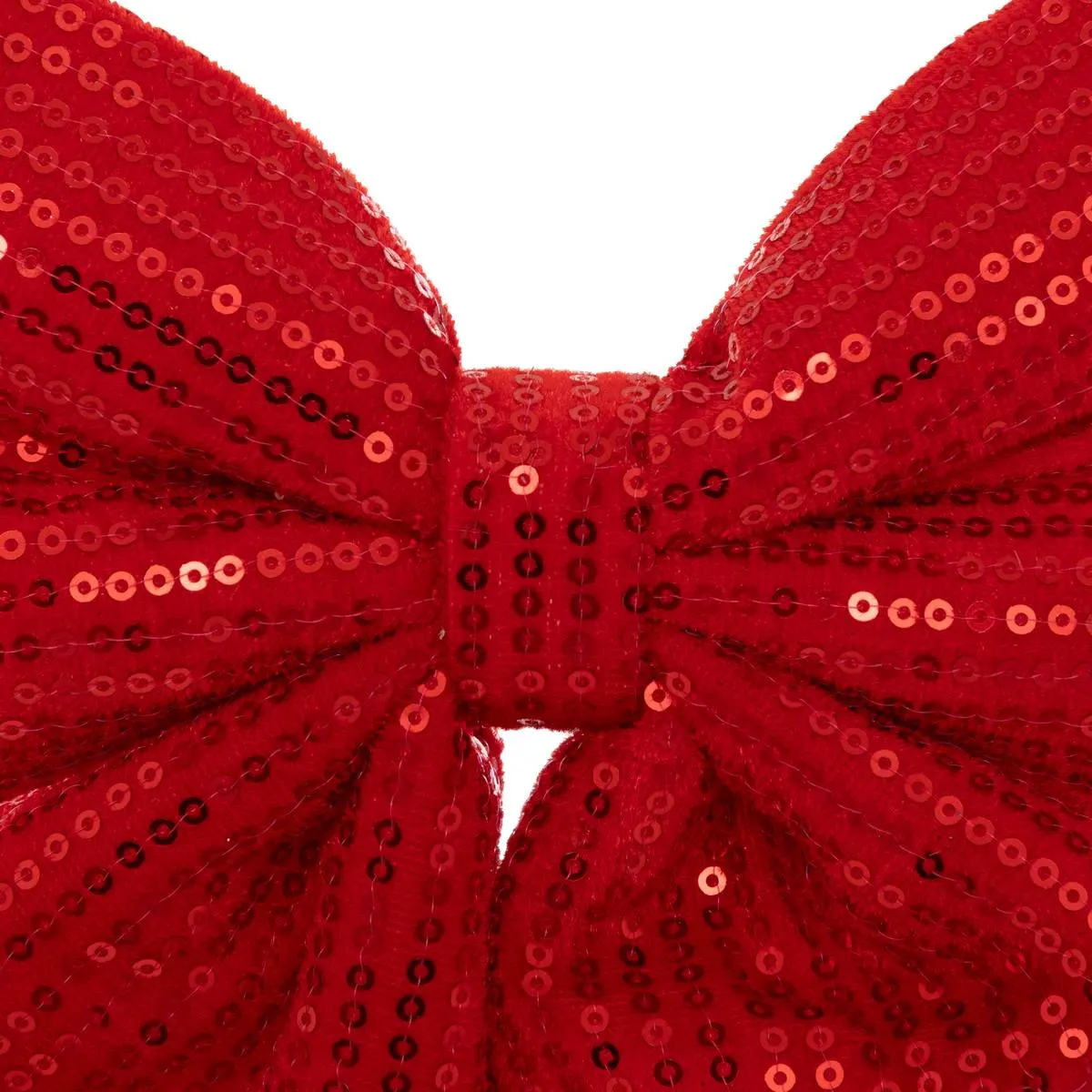 Specificatii tehnice Culoare: Rosu Material: Poliester Dimensiuni produs: 20 x 3 x 24 cm Scurta descriere Fundita decorativa cu paiete rosii adauga un plus de...