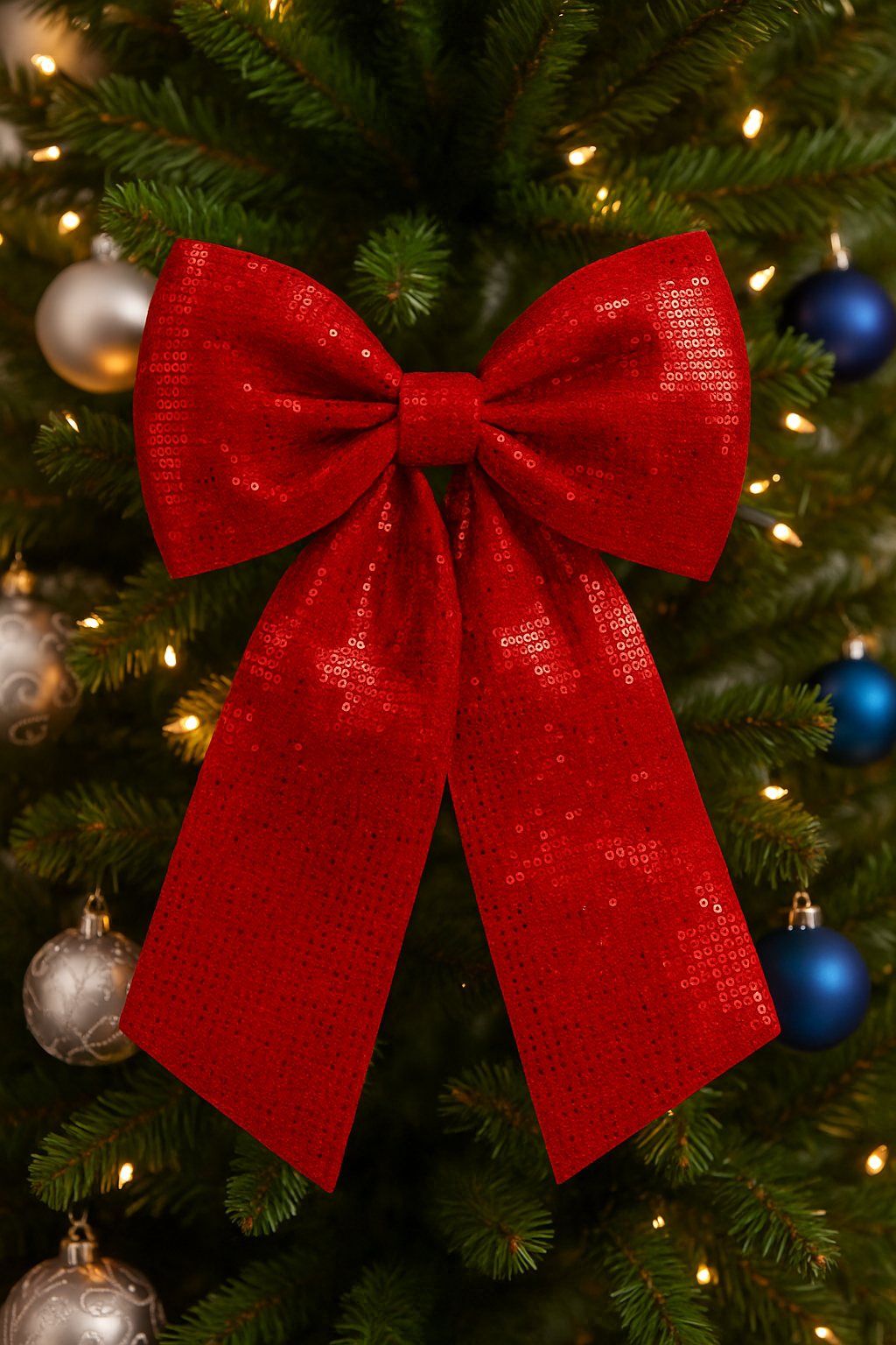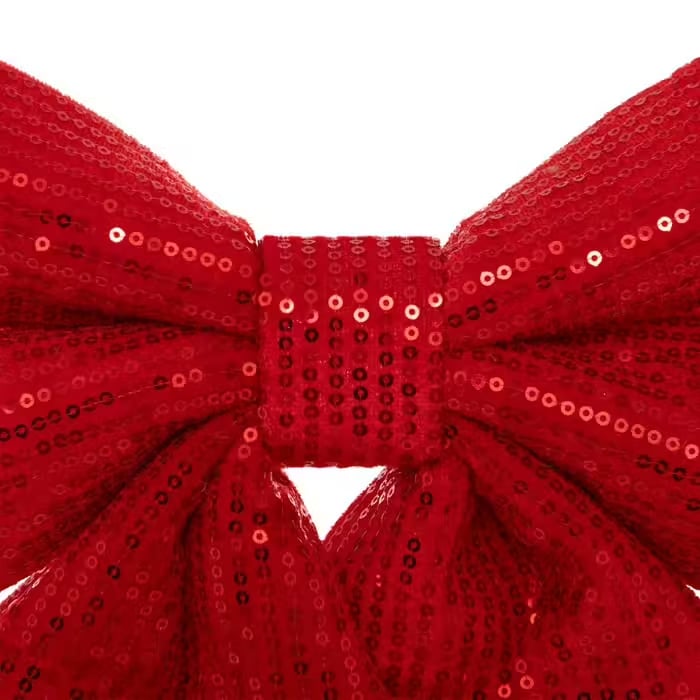 Specificatii tehnice Culoare: Rosu Material: Poliester Dimensiuni produs: 39 x 3.8 x 47 cm Scurta descriere Fundita decorativa mare cu paiete rosii este accesoriul perfect pentru a adauga o nota festiva si stralucitoare decorului de sarbatori. Realizata din poliester lucios, capteaza frumos lumina si este ideala pentru a decora bradul, usa, ferestrele sau ambalajele cadourilor. Caracteristici principale Design elegant, acoperit integral cu paiete rosii Realizata din poliester de calitate superioara Culoare rosie intensa, perfecta pentru decoruri de Craciun Dimensiune mare, potrivita pentru decoruri vizibile si atractive Usor de prins pe brad, coronite sau ambalaje festive