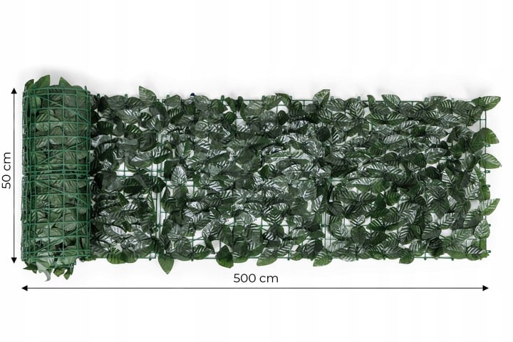 Gard artificial decorativ 50x500 cm, frunze ornamentale, protectie UV si intemperii, plastic PVC, verde inchis