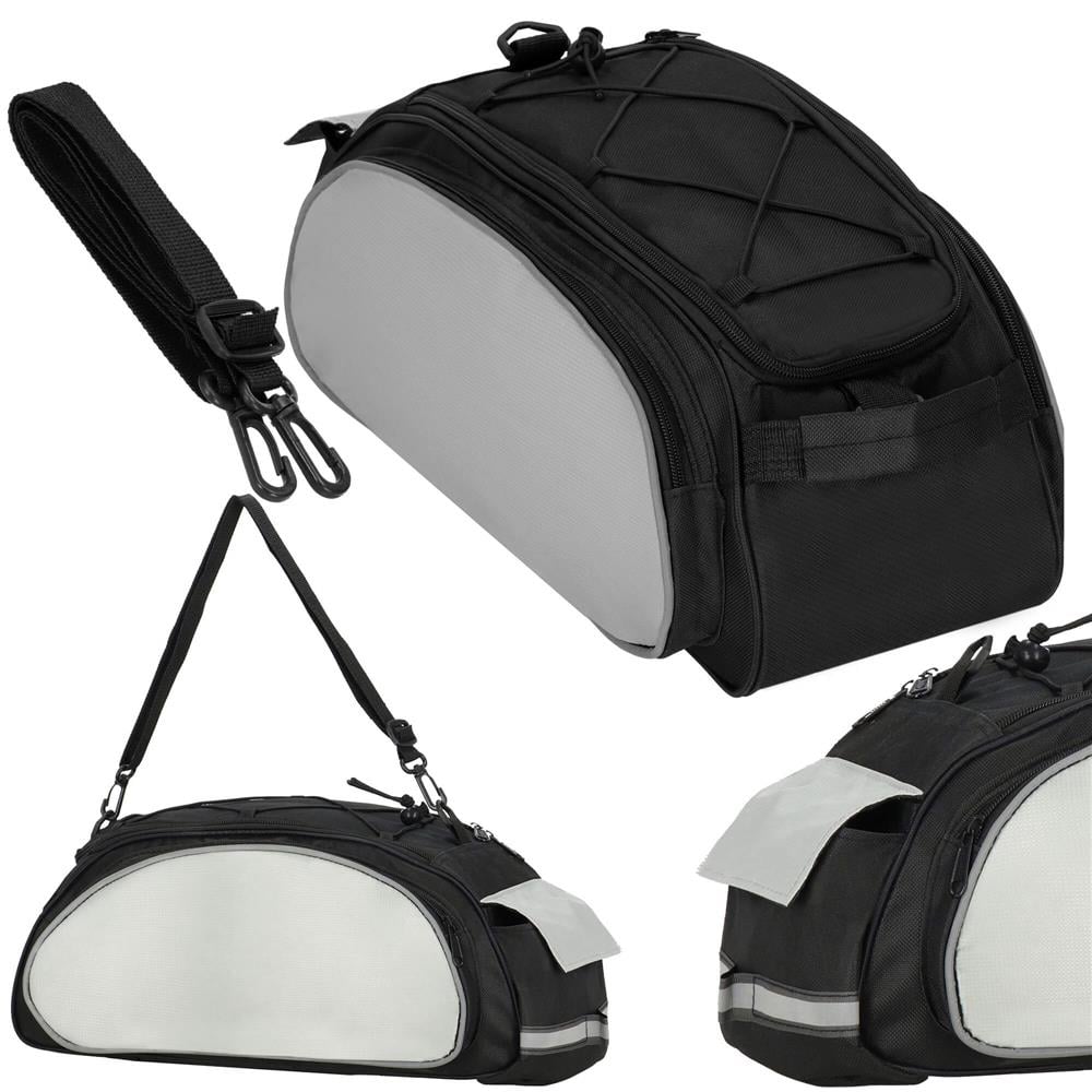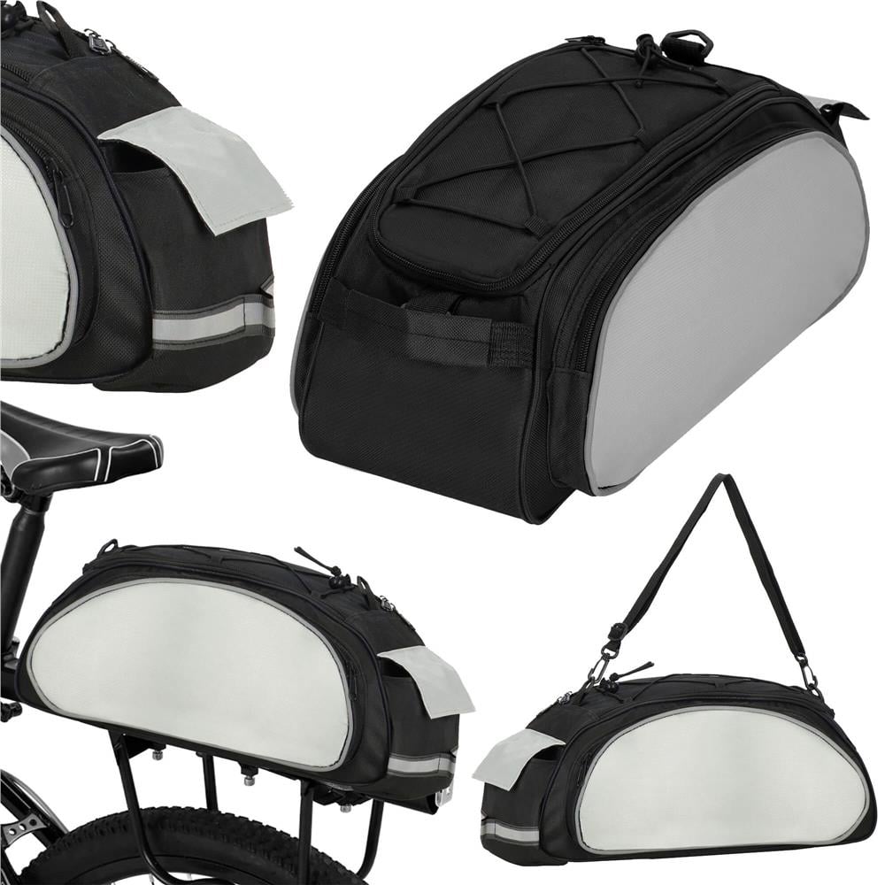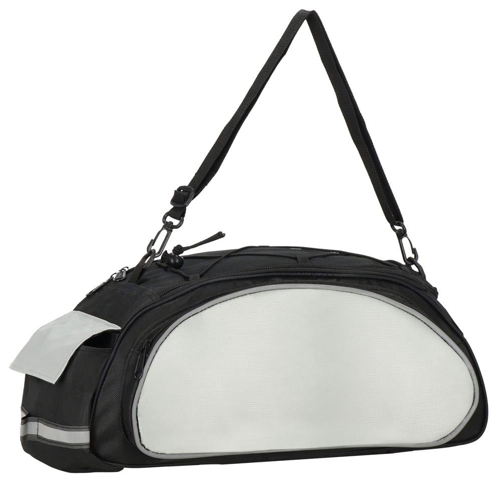 Geanta portbagaj bicicleta, 1 compartiment si 3 buzunare laterale, 40x20x17cm, negru cu elemente reflectorizante gri